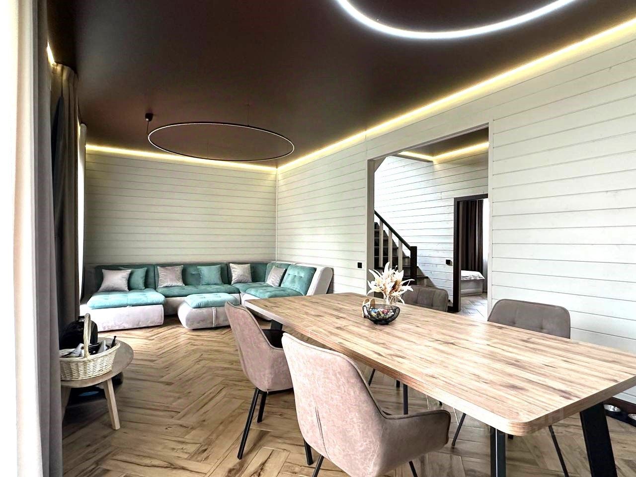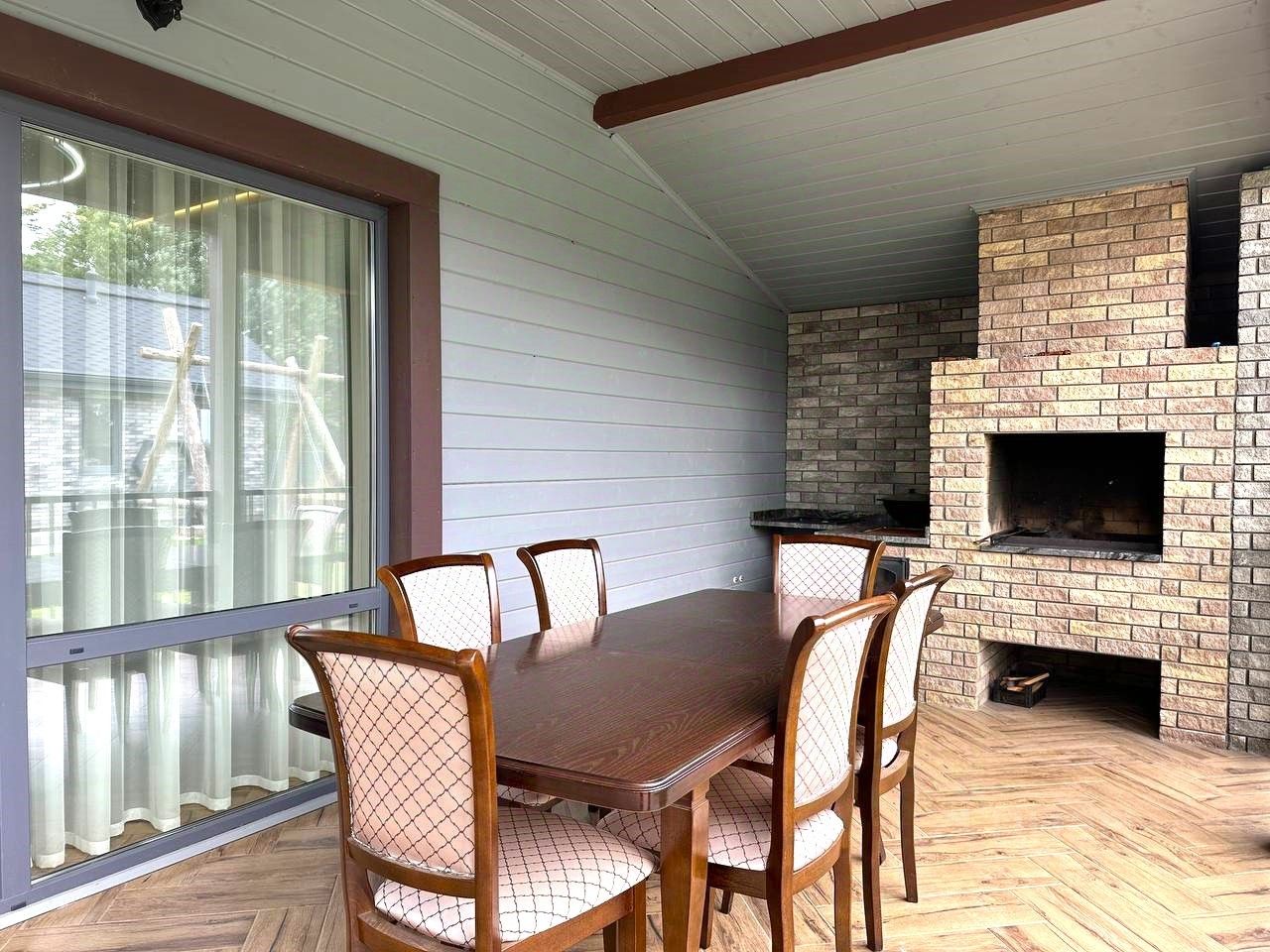 Дом выполнен из бруса, очень теплый и комфортный, площадь 200 кв включает в себя: - Четыре отдельные спальни (хозяйская, гостевая и 2 детские), - кабинет, - оборудованную котельную, - гардеробную, - два санузла, - прихожую с огромным шкафом, - просторный холл, - шикарную кухню-гостиную и - огромную террасу с ''мягкими окнами'' и каменной мангальной зоной.