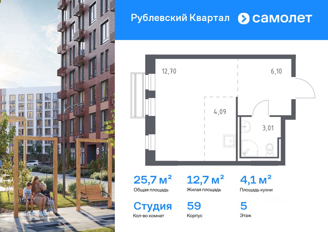 Предлагается квартира студия комфорт-класса 25,7 кв.м в корпусе 59 на 5 этаже, в ЖК ''Рублевский Квартал'' Квартира с чистовой отделкой. Доступность дополнительных опций уточняйте у застройщика.