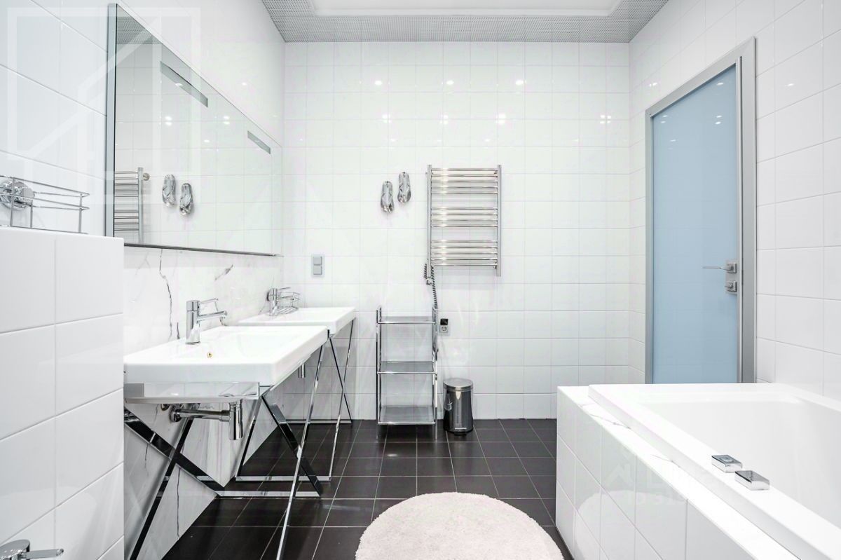 Планировка: просторная гостиная, кухня с обеденной зоной, две спальни, постирочная, гардеробная, два совмещенных с/у с ванной и душевой кабиной. Кухонный гарнитур укомплектован полным набором встроенной техники, включая посудомоечную машину. Установлены сплит-система, водонагреватель и теплые полы.