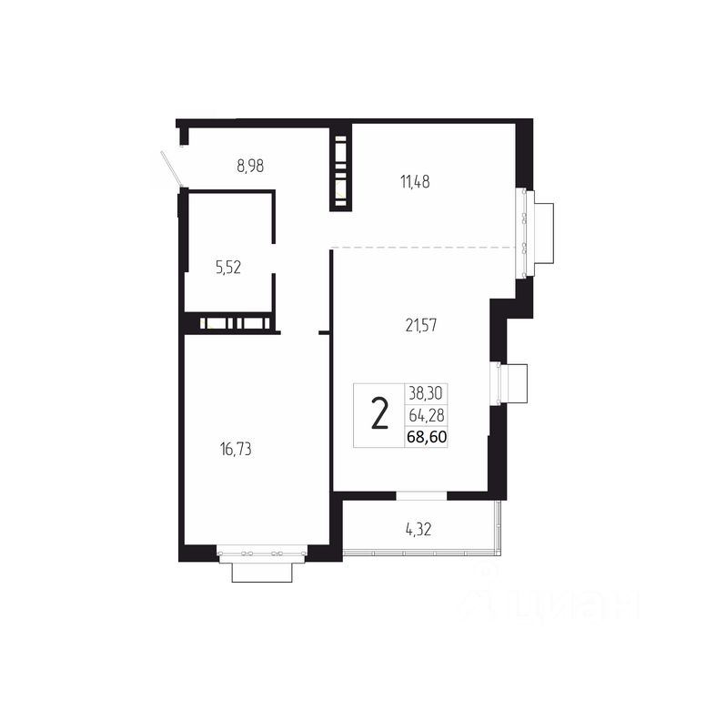 Общая площадь68,6 м2