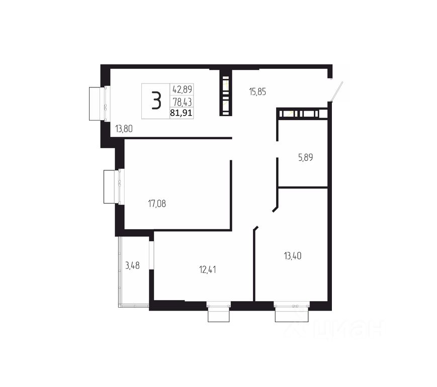 Общая площадь81,91 м2