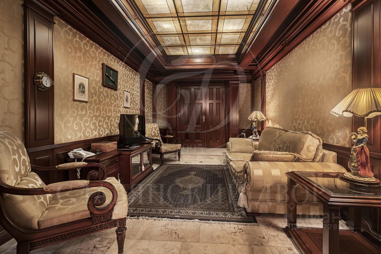 1 этаж: Лобби: приемная и зона ожидания. Буфет. Сан/узел для персонала и посетителей. Кабинет с камином и большим столом для переговоров. Сан/узел приватный, с сауной/хаммамом. Отдельный личный вход с охраняемого двора (стоянка авто) в приватный холл. Лифт в зону отдыха цоколь. Лестница в цокольный этаж.
