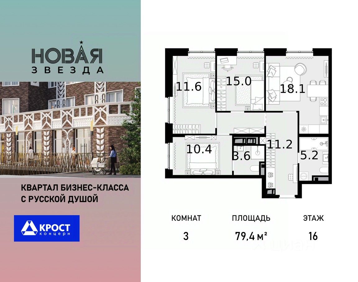 Продаётся 3-к квартира 79.4 кв.м. на 16-м этаже 22 этажного дома, корпус 6 - Резиденция ''Хабаровск''. Без отделки. Легендарный квартал ''Новая звезда'' продолжается II очередью, которая спроектирована как мультифункциональный кластер. ЖК ''Новая Звезда'' расположен на территории Новой Москвы, в 10 мин. от м. Теплый стан и в 9 мин. пешком от строящейся станции метро ''Бачуринская''.