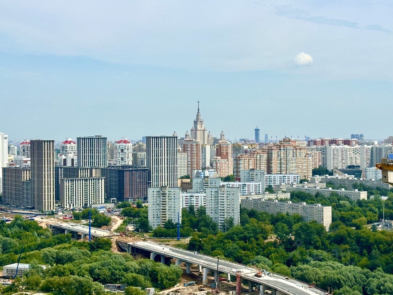 Квартира без отделки, свободная планировка, высокие потолки- 3 метра, два санузла, застекленная лоджия, 4 скоростных лифта, из окон открываются великолепные панорамные виды на МГУ и Москва-Сити.