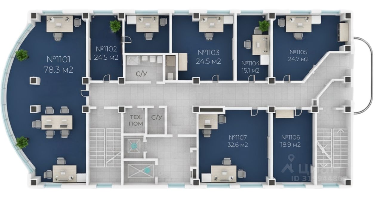 класс В, 2014 г. постройки Общая площадь - 296,50 м2 Расположен на 10 этаже (занимает весь этаж, разделен на кабинеты-офисы)