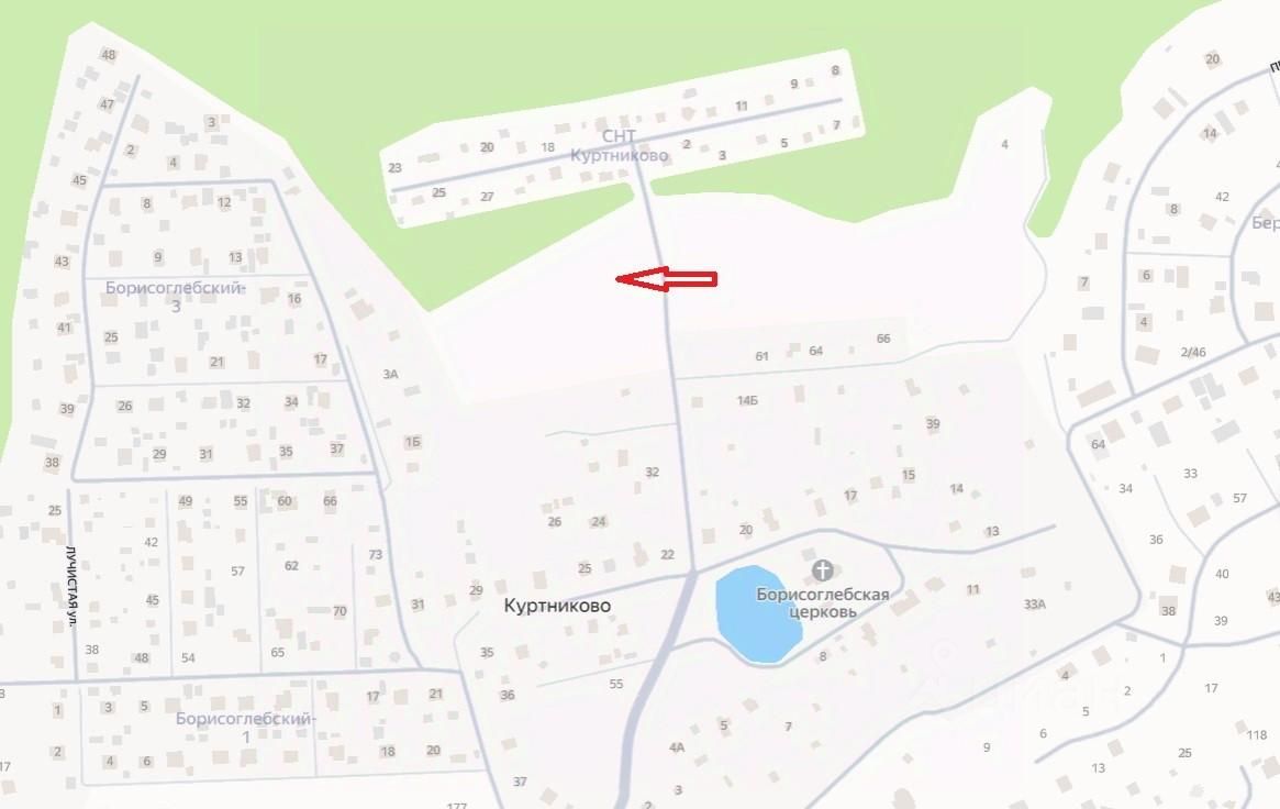 Истринский район. Расположен рядом с СНТ Куртниково. В близи большой рукав Истринского водохранилища (800м), лес, озеро, церковь. 59 км. от МКАД по скоростному Новорижскому или Волоколамскому шоссе, до ж/д станции Истра ходят рейсовые автобусы. Подъездная дорога асфальтирована.