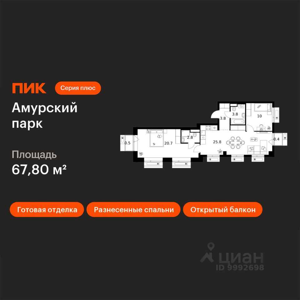 Продаётся 2-комн. квартира площадью 67,8 кв.м на 8 этаже 12 этажного дома (Корпус 4.2, Секция 1) проекта ПИК Амурский парк. Светлый просторный подъезд на уровне земли, функциональная планировка, большие окна, c отделкой.