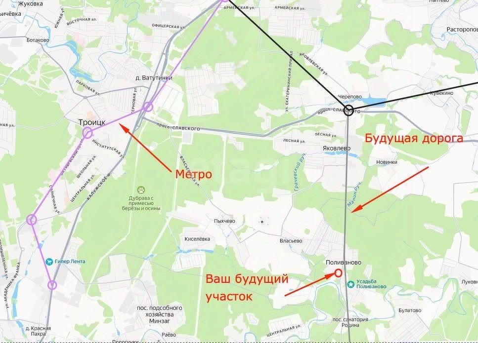 ТРАНСПОРТНАЯ ДОСТУПНОСТЬ Удобный выезд на Варшавское и Калужское шоссе. 26 км от МКАД. Станция Д2 ''Подольск'' - 25 мин. на автобусе. От метро ''Ольховая'', ''Новомосковская'', ''Тёплый стан'' -1ч. 15 мин. на автобусе или 25 мин на авто (через деревню Власьево). Будет запущен маршрут от м.Ольховая до пос.Щапово. Строится дорога Яковлево -Щапово, через Поливаново. Откроются станции Троицкой линии метро в 10 минутах на авто (2027г. - Ватутинки, 2029г.-Красная Пахра). Автобусная остановка в 50м. К 2030 ГОДУ НОВАЯ ЧЁРНАЯ ВЕТКА МЕТРО В ЯКОВЛЕВО.