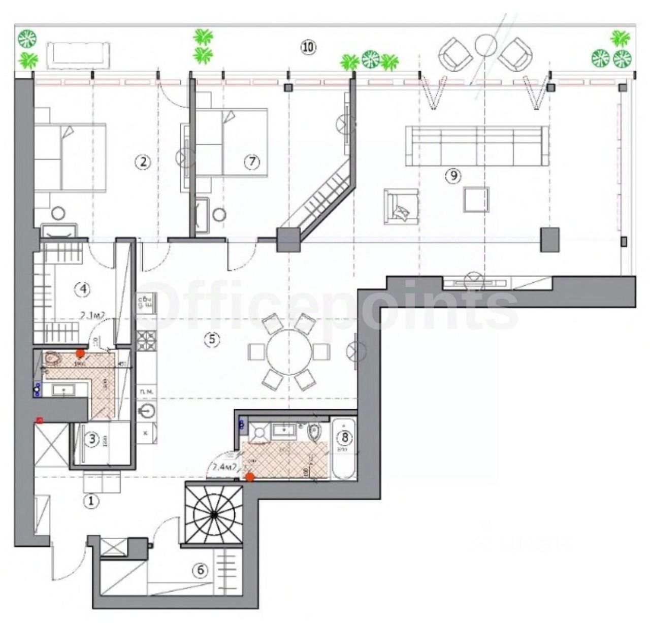 Помещение без ремонта, открытая планировка. Панорамные окна. Высота потолка: до 4,5 м. Приточно-вытяжная система вентиляции, центральная система кондиционирования. Наземная парковка.