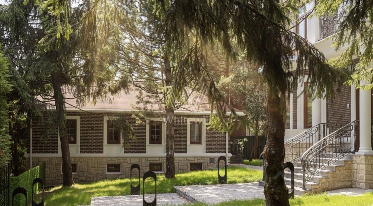Николино. Дом в европейском стиле площадью 357 м² построили на уютном участке 12 соток с лесными деревьями. Фасад дома облицован бордовым клинкерным кирпичом, украшен колоннами и фигурной ковкой. В отделке интерьера использованы мрамор, натуральное дерево, оникс. Резиденция укомплектована итальянской мебелью Baxter, Minotti, Sovet, кухонной техникой Miele и сантехникой Gessi. Планировкой предусмотрены 3 спальни, кухня-столовая-гостиная с выходом на террасу с выдвижной маркизой, кабинет и каминный зал. Рядом расположен гараж с блоком для персонала. На участке выполнен ландшафтный дизайн, дорожки вымощены плиткой и камнем, высажены декоративные кустарники.
