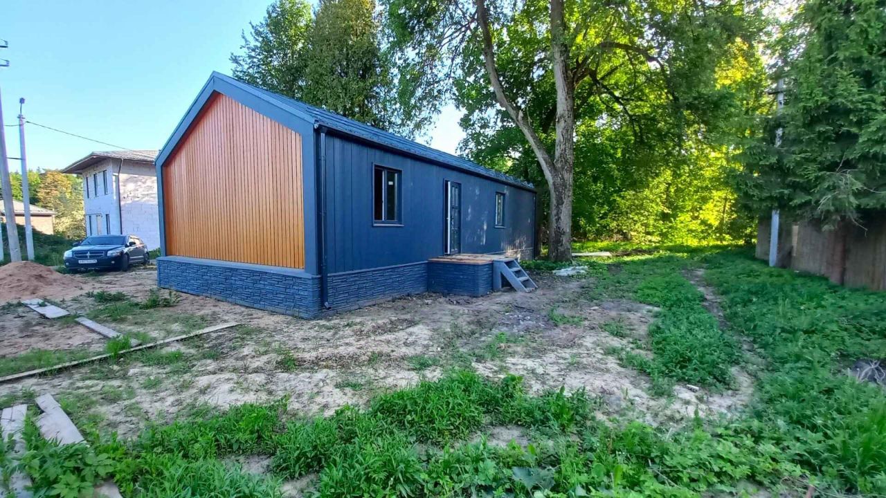 ПЛАНИРОВКА И МАТЕРИАЛЫ: дом в стиле Барнхаус построен по технологии ''СИП'' в 2024 году, общая площадь 76,4 кв.м, в предчистовой отделке. Дом энергоэффективный, построен из качественных и экологически чистых материалов, фундамент железобетонные сваи, внешняя отделка из металлопрофиля, двухкамерные окна Rehau 80-го профиля, установлена система снегоудержания и водостока. Планировка дома подразумевает: просторная терраса, кухня-гостиная со вторым светом, две просторных спальных комнаты, совмещенный санузел, холл.