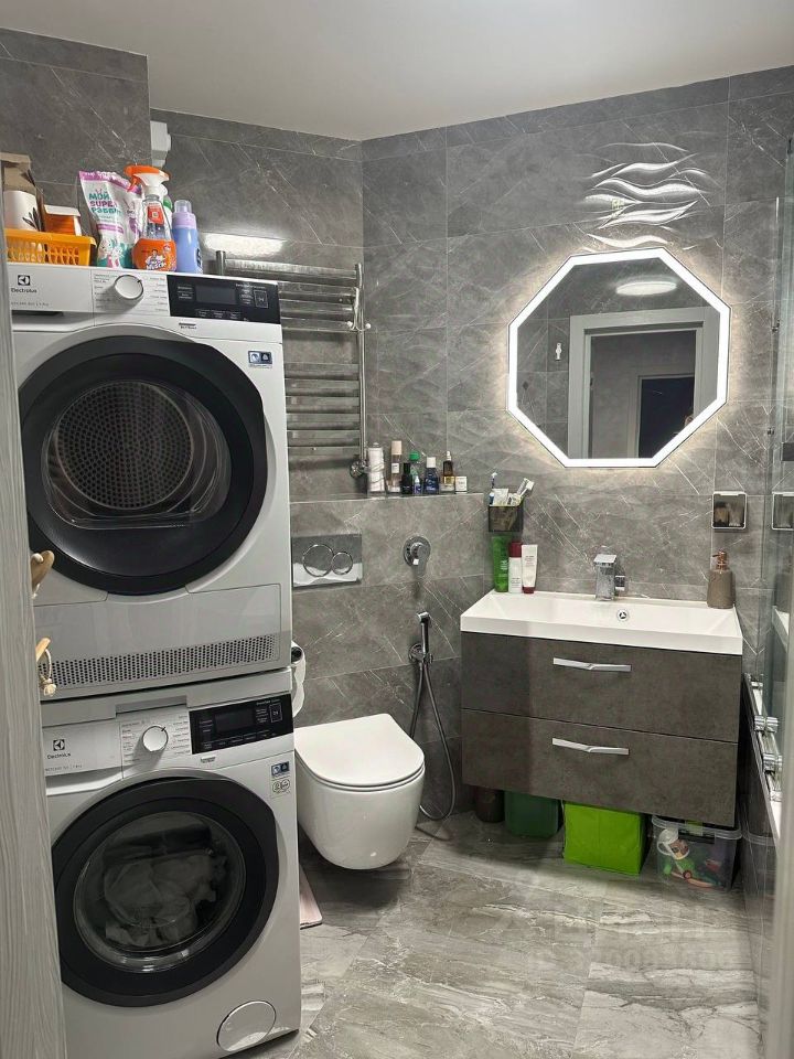 Теомостатическая система + излив тоже Италия (тропический душ, кран и Лейка выходят прям из стены без лишних балок и стоек) включается вода по кнопке Шторка стеклянная тоже очень качественная Каменная раковина широкая с тумбой Зеркало с подсветкой и подогревом от запотевания Инсталляция geberit - кто разбирается тот знает это топавпя и надежная фирма Гигиенический душ В потайном ящике где счетчики воды установлены фильтры жесткой очистки воды Стиралка и сушилка electrolux тоже топовые были, колонна вышла в 200к