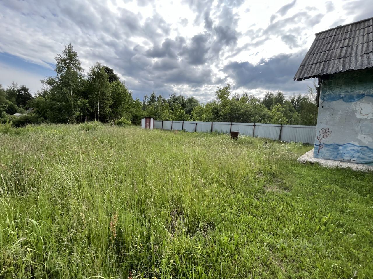 Участок правильной формы,огорожен с 3 х сторон забором из профлиста,есть ворота для заезда авто. Ровный,сухой,с выходом на пожарный пруд.