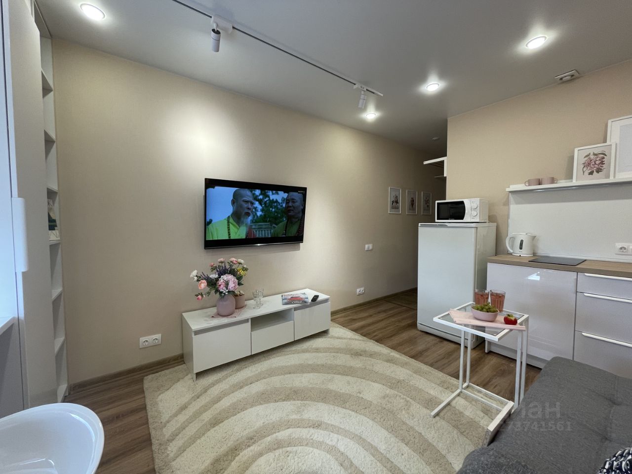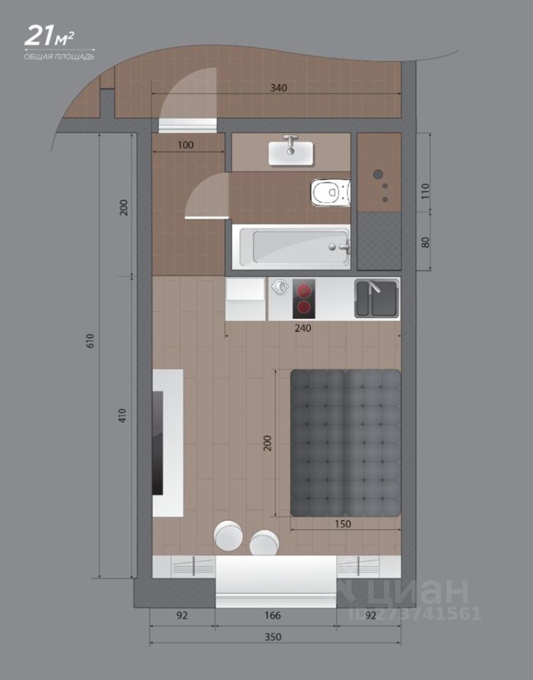 Площадь студии 21 м. кв., с комфортом разместит 1 гостя (можно 2-х) Все необходимое для проживания есть.