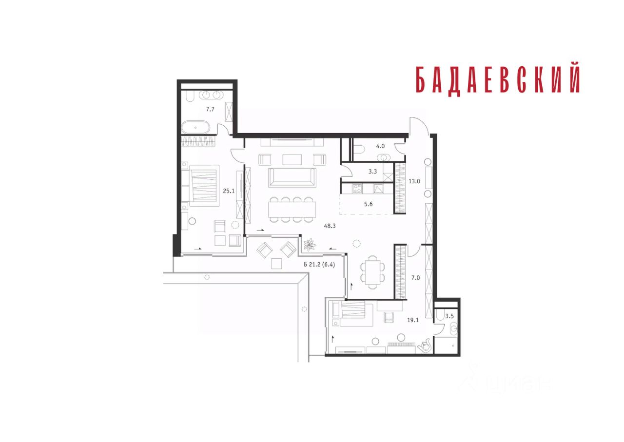 Продаётся 3-комнатная квартира общей площадью 143.00 м² на 17 этаже Жилого Комплекса Бадаевский.
