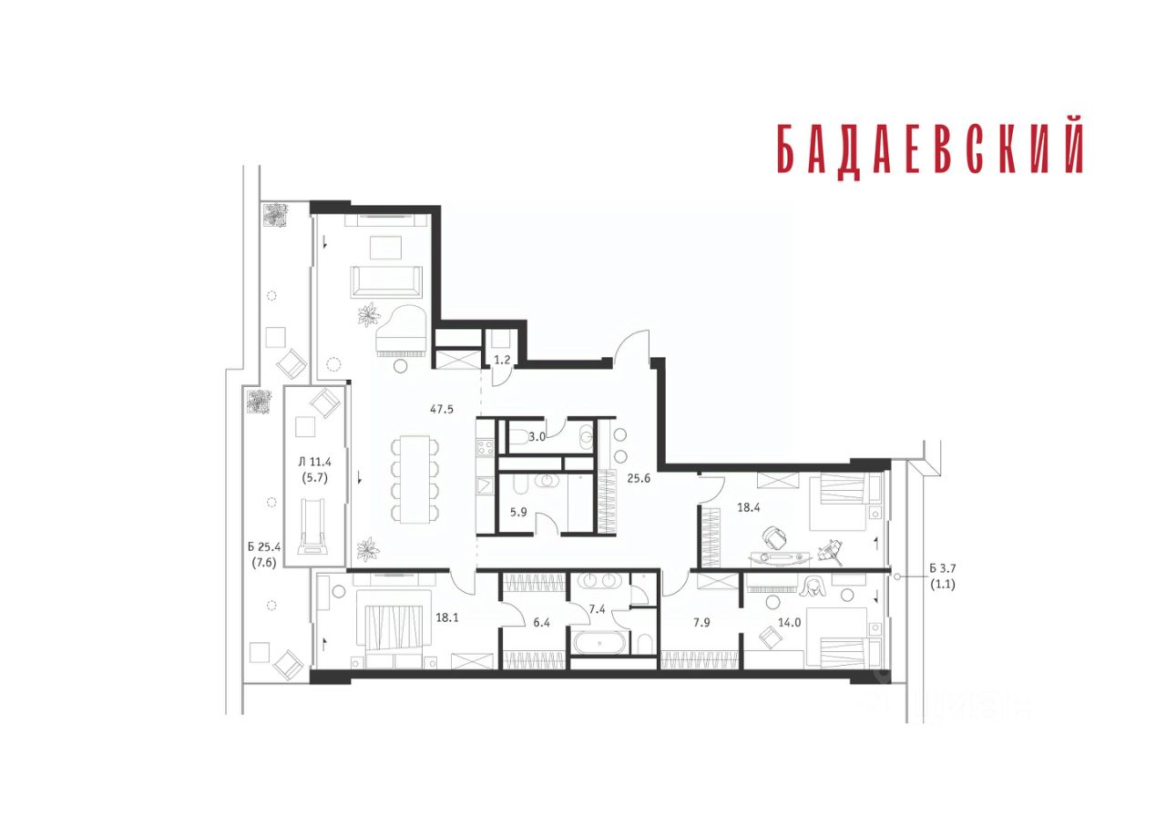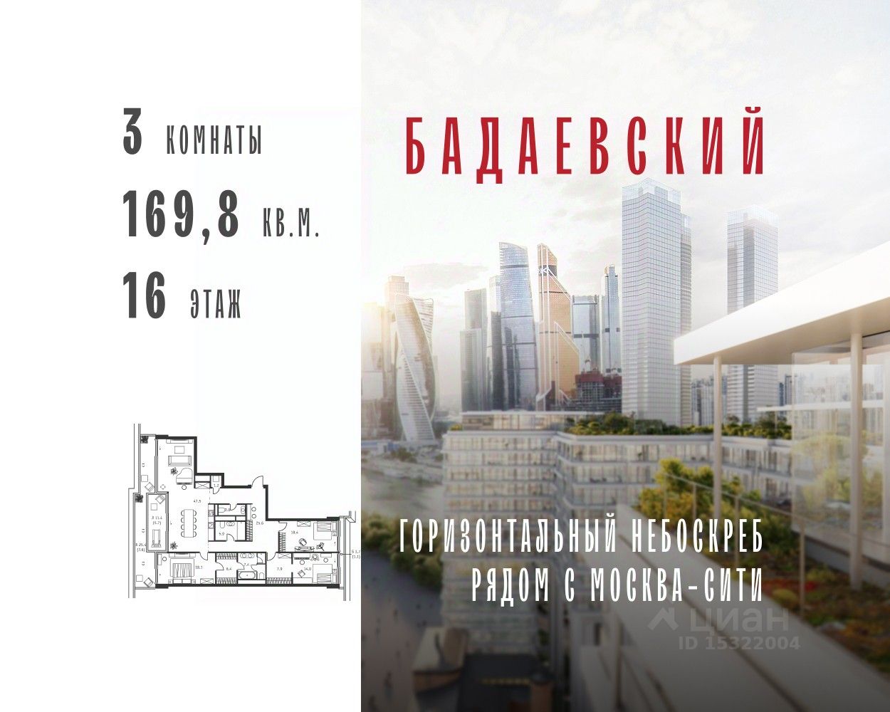 Продаётся 3-комнатная квартира общей площадью 169.80 м² на 16 этаже Жилого Комплекса Бадаевский.