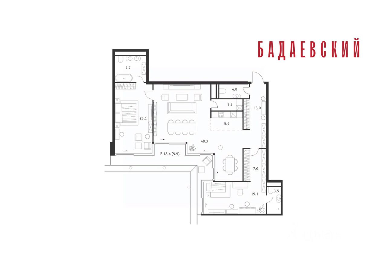 Продаётся 3-комнатная квартира общей площадью 142.10 м² на 13 этаже Жилого Комплекса Бадаевский.