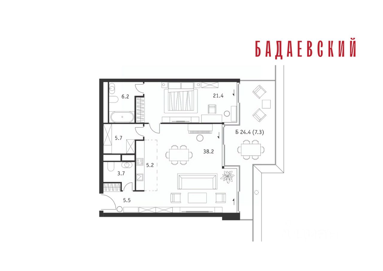 Расположение в начале Кутузовского проспекта делает проект не только престижным, но и удобным: до Третьего транспортного и Садового кольца можно доехать за 5 минут, а Кремль и основные исторические достопримечательности расположены в 15 минутах на автомобиле. Напротив ''Бадаевского'' находится офисный кластер ''Москва-Сити''.