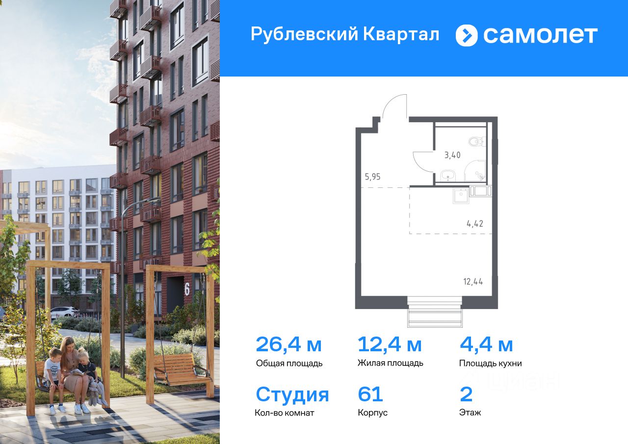 Предлагается квартира студия комфорт-класса 26,4 кв.м в корпусе 61 на 2 этаже, в ЖК ''Рублевский Квартал'' Квартира с чистовой отделкой. Доступность дополнительных опций уточняйте у застройщика.