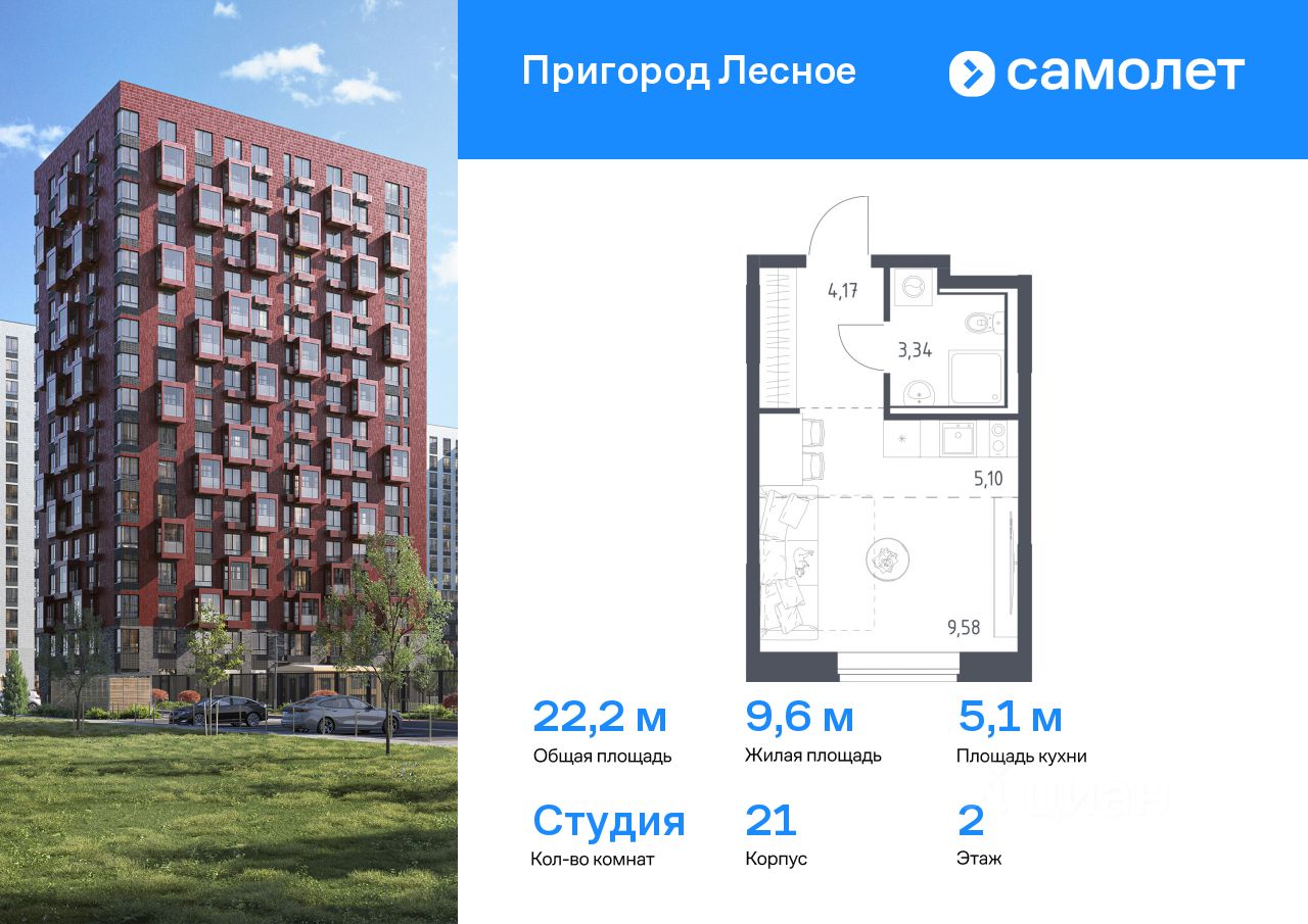 Предлагается квартира студия комфорт-класса 22,19 кв.м в корпусе 21 на 2 этаже, в ЖК ''Пригород Лесное'' Квартира без отделки. Доступность опции ''отделка'' и возможность комплектации мебелью и декором уточняйте у застройщика.
