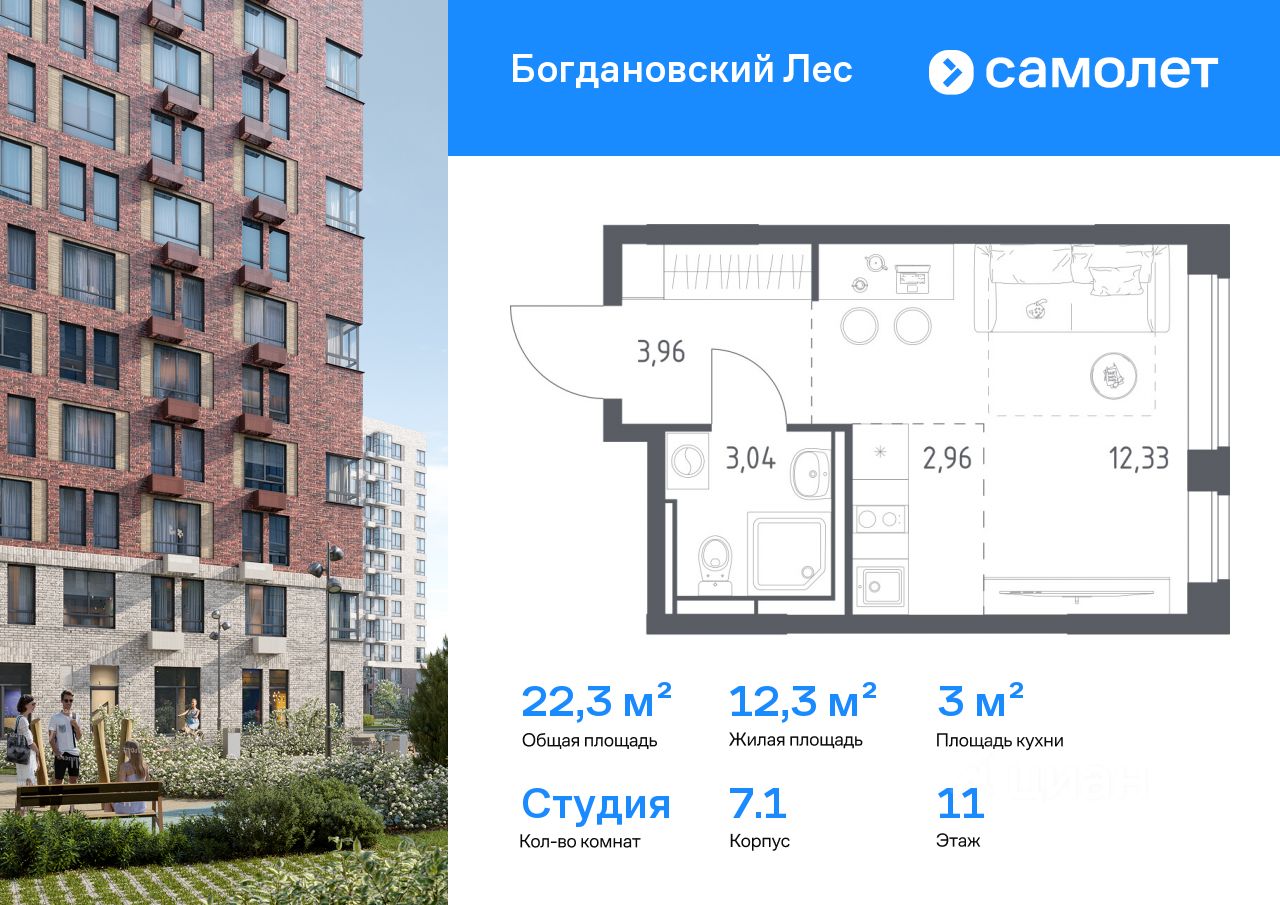 Предлагается квартира студия комфорт-класса 22,29 кв.м в корпусе 7.1 на 11 этаже, в ЖК ''Богдановский Лес'' Квартира без отделки. Доступность опции ''отделка'' и возможность комплектации мебелью и декором уточняйте у застройщика.