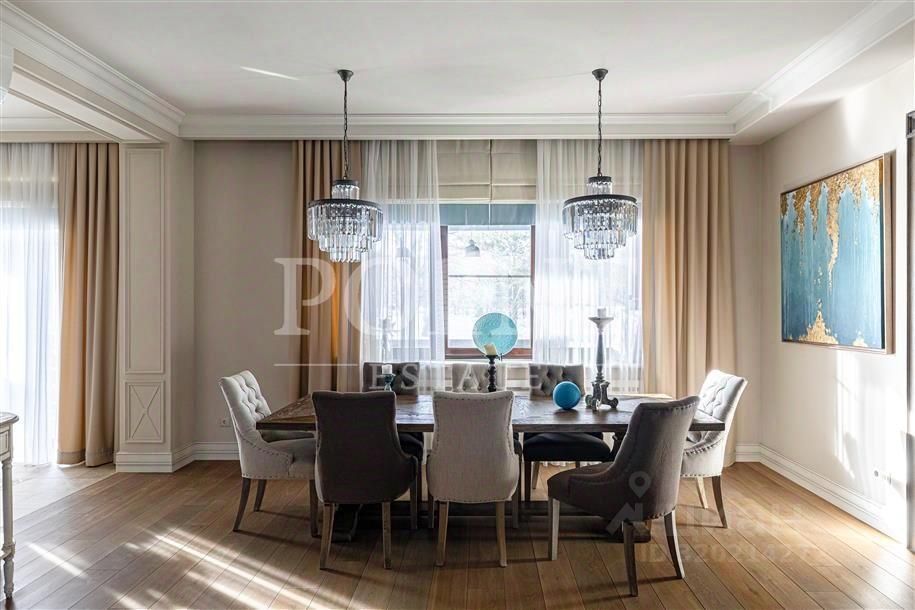 Лот: 104438. Просторный загородный дом площадью 720 кв.м с дизайнерским ремонтом построен в премиальном коттеджном поселке ''Миллениум Парк''. Внутреннее пространство наполнено светом благодаря большой площади остекления и нейтральной цветовой гамме интерьера. Комфортная планировка. На первом этаже находится гостиная с камином, кухня, совмещенная с обеденной зоной, санузел, спальня с санузлом, гардеробная, детская игровая, холл, постирочная, котельная, кладовая, комната персонала, патио. Второй этаж занимает спальня с гардеробной и санузлом, две спальни с гардеробными, еще одна спальня, санузел, спа-зона с сауной, джакузи, хаммамом, душевой и комнатой отдыха. Третий этаж отведен под кабинет и кинотеатр. Предусмотрен встроенный гараж для двух автомобилей. На участке 25 соток выполнен великолепный ландшафтный дизайн, есть ротонда, оборудована детская площадка. Поселок окружают первозданные леса, чистейший воздух и развитая инфраструктура Новой Риги. Для собственников домов организован закрытый клуб, обладателей клубных карт приглашают на светские мероприятия, закрытые показы и спортивные соревнования.