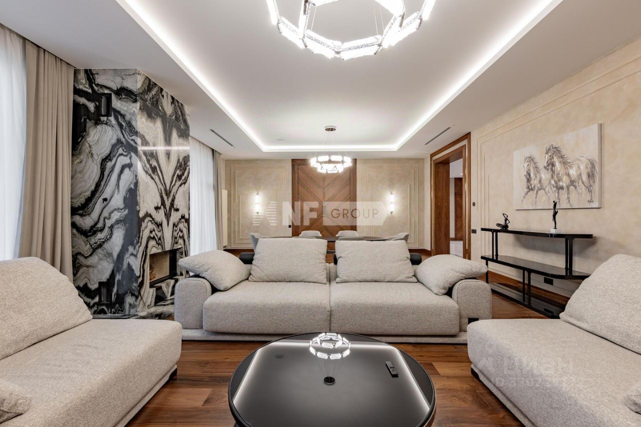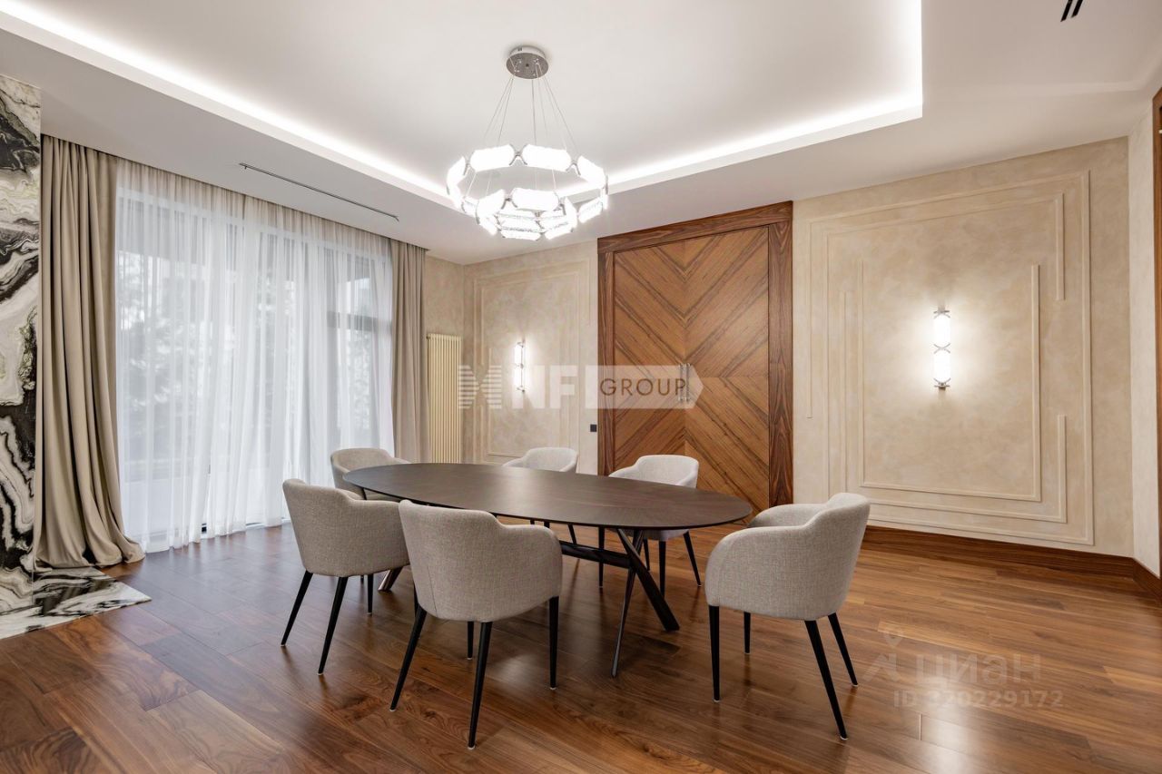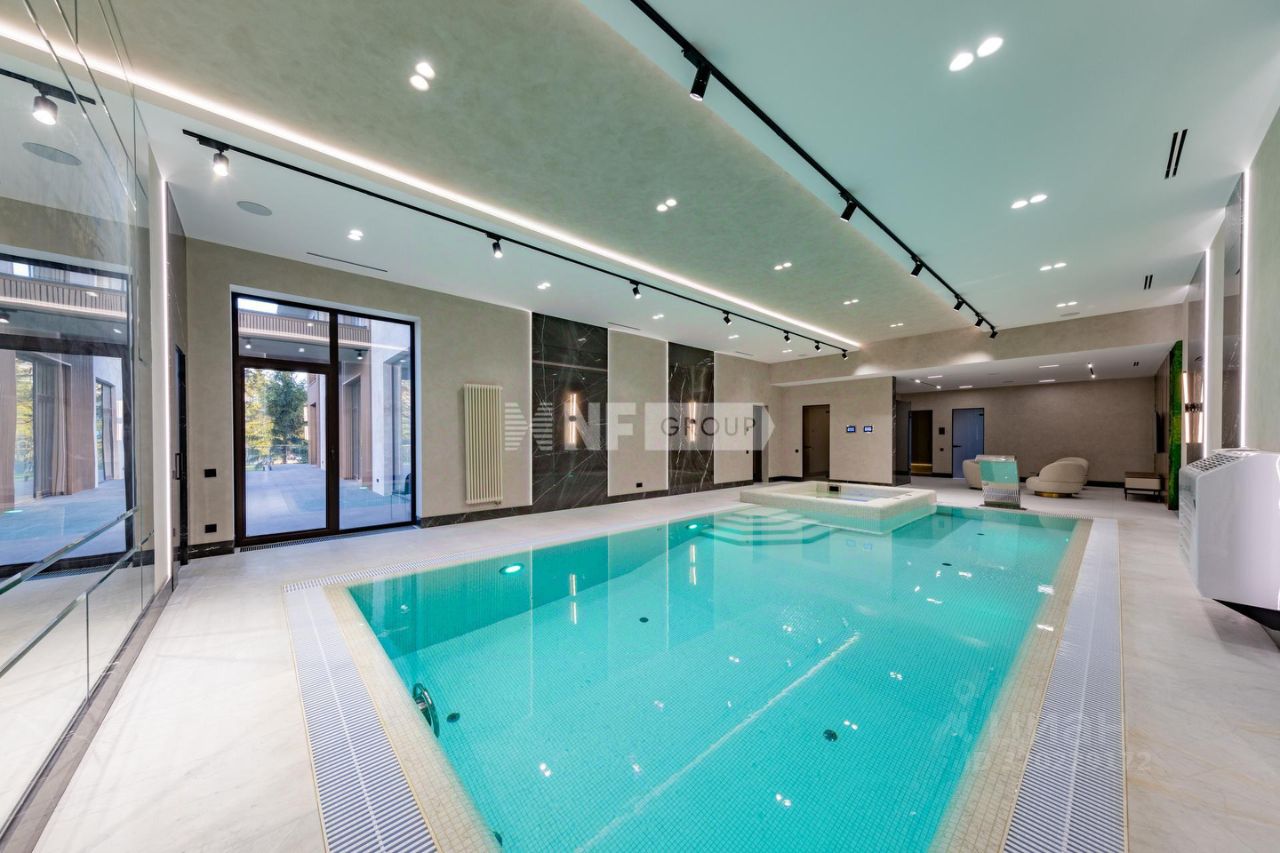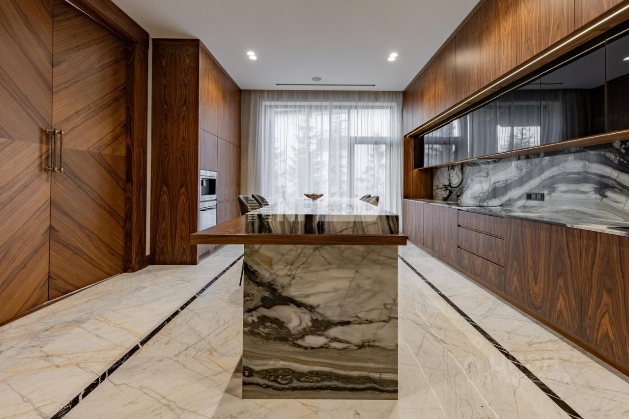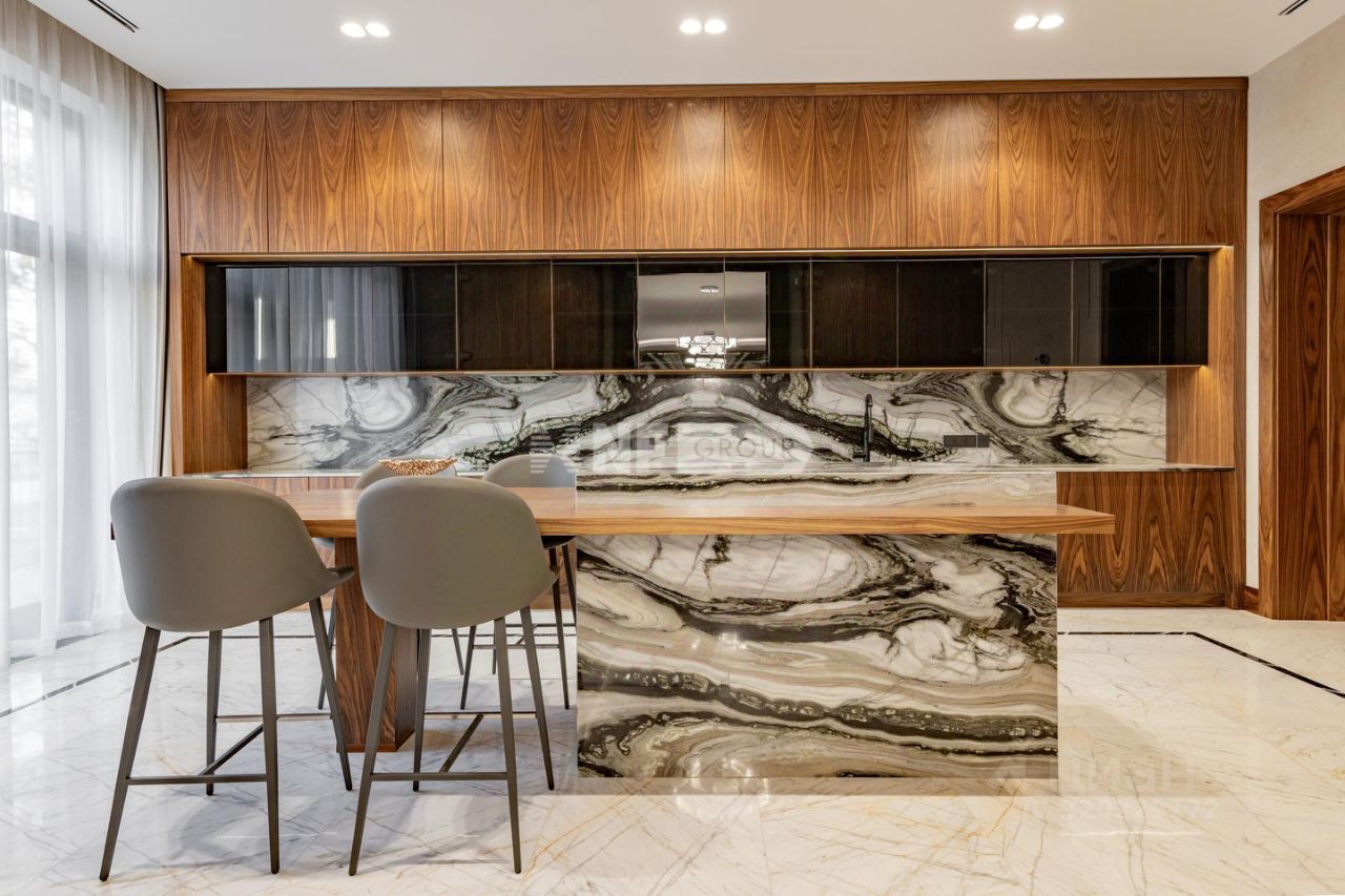 Современный дом 1 200 м² в поселке Агаларов Эстэйт в 24 км от МКАД по Новорижскому шоссе. На первом этаже вас встречает светлая прихожая с гардеробной, просторная гостиная, объединённая с кухней и столовой. Здесь же расположены уютный кабинет, приватная спальня с собственным санузлом и гардеробной, а также полноценная зона отдыха с бассейном, сауной и хаммамом, постирочной и удобным санузлом. Второй этаж — это приватная зона, включающая три спальни, каждая со своим санузлом и гардеробной. Дом выполнен в современном стиле с высококачественной отделкой и оснащён передовыми инженерными решениями. В отделке применены натуральные дорогостоящие материалы, в частности мрамор, травертин, кварцит, натуральное дерево. На кухне — техника V-ZUG, система кондиционирования Daikin, приточно-вытяжная вентиляция Breezart с мультизональным увлажнением, а также умная система электрики на базе KNX. Каждый элемент здесь продуман для того, чтобы вы могли наслаждаться безупречным качеством жизни каждый день.