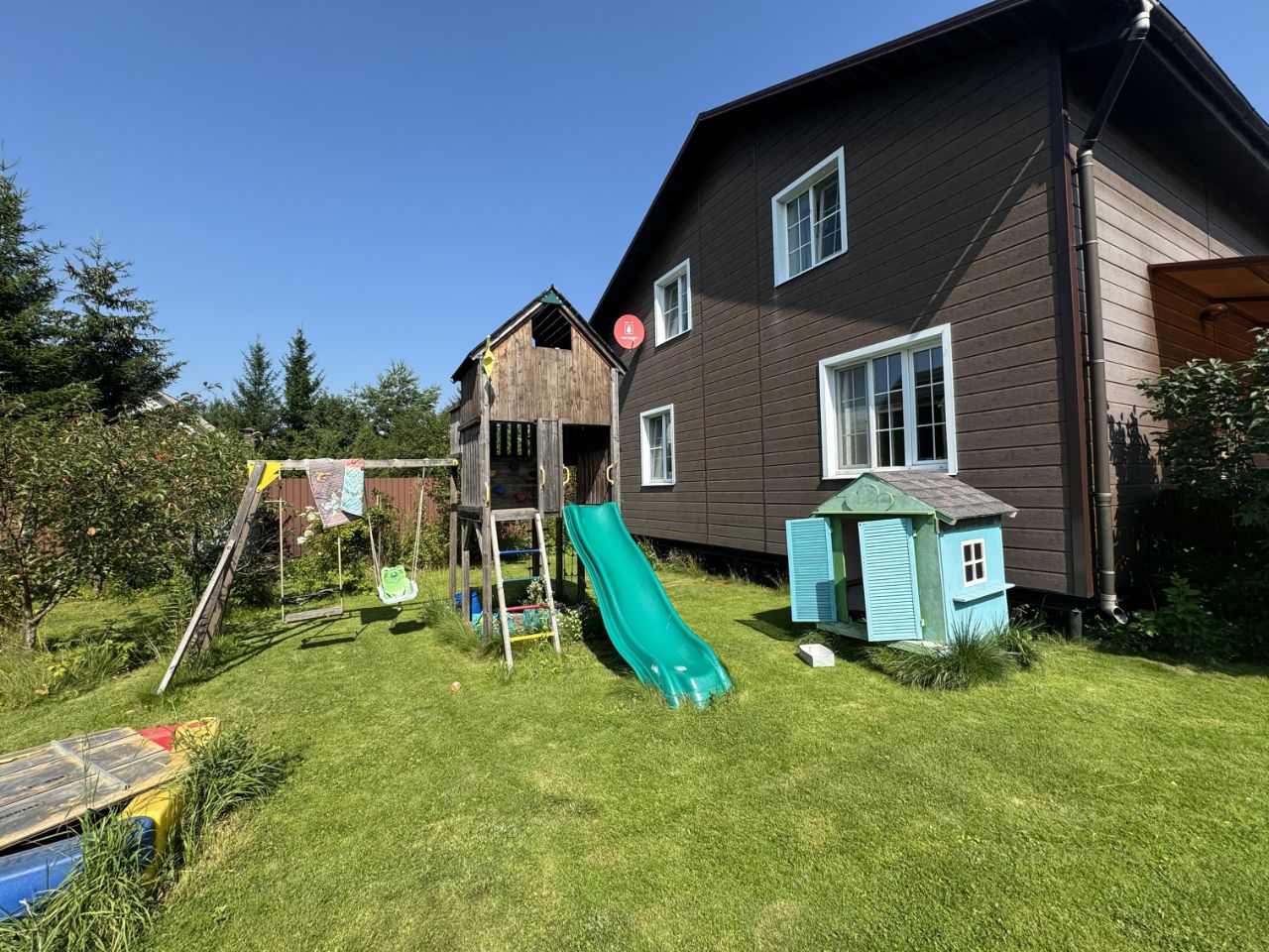 Просторный двухэтажный дом из кирпича, построенный в 2015 году, расположен на участке площадью 12 соток. В доме выполнен качественный евро ремонт с использованием современных материалов. На первом этаже расположена уютная кухня с современной бытовой техникой и просторная гостиная, спальня. На втором этаже находятся 3 изолированные светлые спальни, санузел и гардеробная. Дом оборудован газовым отоплением, водоснабжение осуществляется через скважину, также есть колодец, канализация - септик. Для удобства жильцов подключено кабельное/цифровое ТВ. На территории имеется терраса, где можно наслаждаться свежим воздухом и красивыми видами. участок ухожен, с зелеными насаждениями и детской площадкой. Также есть гостевой двухэтажный дом и гараж для автомобиля. До ближайшей железнодорожной станции легко добраться благодаря асфальтированной дороге и наличию остановки общественного транспорта. В пешей доступности находится школа, что делает этот дом отличным местом для семейного проживания. Дисконт реальному покупателю.