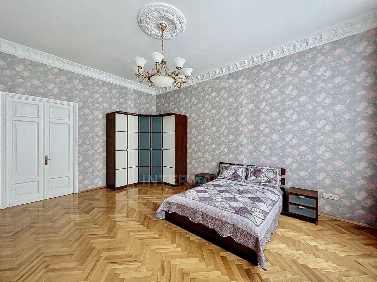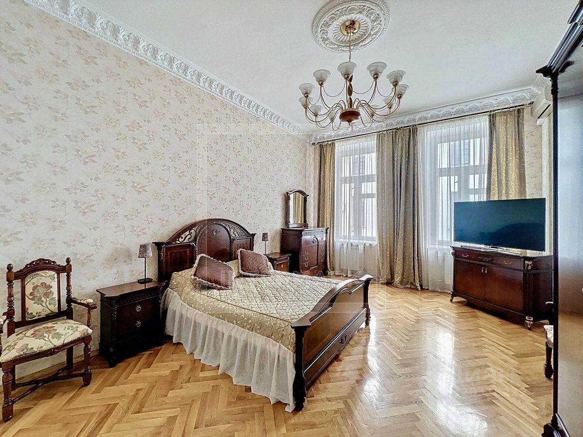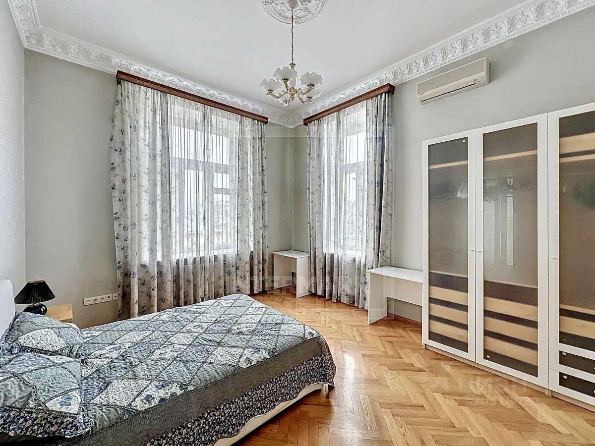 ID 16874: Просторная 5-ти комнатная квартира в историческом центре Москвы в дореволюционном отреставрированном особняке. Интерьер квартиры выполнен в классическом стиле. Квартира полностью меблирована и технически оснащена всем необходимым для комфортного проживания техникой. Мебель в комнатах и на кухне из дорогих пород дерева (Италия). Квартира оснащена бойлером. Общая площадь 190 кв. м. Планировка: холл, гостиная, три спальни, кабинет, 2 ванные комнаты с ванной и душевой кабиной, кухня, техническая комната. Все комнаты изолированные. Чистый подъезд с охраной и круглосуточным видеонаблюдением. Парковка во дворе за шлагбаумом. В ближайшем доступе: кафе, магазины, рестораны, бары, магазины, салоны красоты, музеи, театры и галереи. Можно с детьми. Можно с животными.