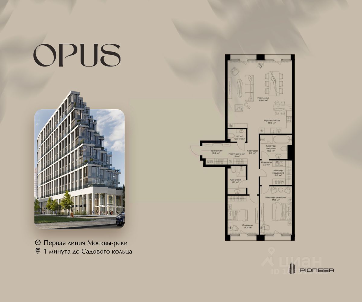 Прямая продажа от застройщика! Продаётся 2-к квартира общей площадью 126.7 кв. м. на 4-м этаже 11 этажного дома. Клубный дом OPUS - современный шедевр архитектуры от компании PIONEER, трансформирующий пространство, меняющий привычный ход вещей. Близость Москвы-реки определила его исключительную форму, вдохновлённую стихией воды. Уникальный и единственный в своём роде OPUS создаёт ощущение преображения, деликатно взаимодействуя с городской тканью. Продуманная территория с парковой атмосферой позволяет находиться в уединении в самом центре города, именно эти исключительные характеристики делают OPUS особенным. Площадь однокомнатной квартиры здесь превышает 50 квадратных метров, а отдельные трёхкомнатные решения восхищают 266-метровым простором и видами на реку. Уникальные квартиры с 8 балконами на разные стороны света, не менее эффектные решения - кабинеты и гардеробные с отдельными балконами, а ванные комнаты с панорамными окнами и собственным балконом. OPUS располагается в историческом месте с видом на Крутицкое подворье и Симоновский вал. Совсем рядом легендарное Замоскворечье - район, сохранивший камерную атмосферу старой Москвы. Локация уникальна также тем, что новые современные объекты будут соседствовать здесь с культовыми объектами культурного и исторического наследия города. За 22 года на рынке недвижимости компания PIONEER реализовала более 30 проектов. Сегодня PIONEER - девелопер премиальной недвижимости с 4 проектами класса премиум и deluxe. Продажа от застройщика. Покупка доступна в рассрочку и ипотеку. Звоните, и мы с удовольствием расскажем все подробности о проекте и условиях покупки.