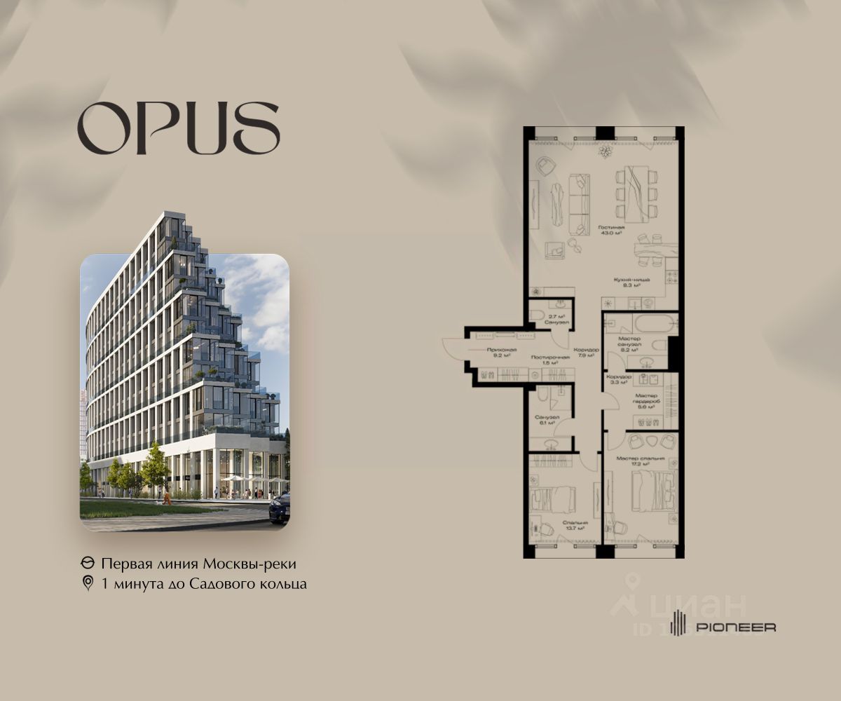 Прямая продажа от застройщика! Продаётся 2-к квартира общей площадью 126.7 кв. м. на 5-м этаже 11 этажного дома. Клубный дом OPUS - современный шедевр архитектуры от компании PIONEER, трансформирующий пространство, меняющий привычный ход вещей. Близость Москвы-реки определила его исключительную форму, вдохновлённую стихией воды. Уникальный и единственный в своём роде OPUS создаёт ощущение преображения, деликатно взаимодействуя с городской тканью. Продуманная территория с парковой атмосферой позволяет находиться в уединении в самом центре города, именно эти исключительные характеристики делают OPUS особенным. Площадь однокомнатной квартиры здесь превышает 50 квадратных метров, а отдельные трёхкомнатные решения восхищают 266-метровым простором и видами на реку. Уникальные квартиры с 8 балконами на разные стороны света, не менее эффектные решения - кабинеты и гардеробные с отдельными балконами, а ванные комнаты с панорамными окнами и собственным балконом. OPUS располагается в историческом месте с видом на Крутицкое подворье и Симоновский вал. Совсем рядом легендарное Замоскворечье - район, сохранивший камерную атмосферу старой Москвы. Локация уникальна также тем, что новые современные объекты будут соседствовать здесь с культовыми объектами культурного и исторического наследия города. За 22 года на рынке недвижимости компания PIONEER реализовала более 30 проектов. Сегодня PIONEER - девелопер премиальной недвижимости с 4 проектами класса премиум и deluxe. Продажа от застройщика. Покупка доступна в рассрочку и ипотеку. Звоните, и мы с удовольствием расскажем все подробности о проекте и условиях покупки.