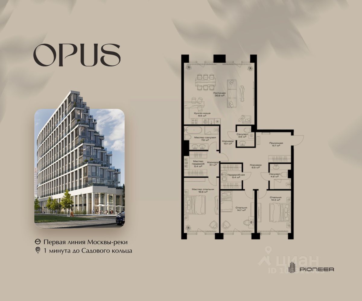 Прямая продажа от застройщика! Продаётся 3-к квартира общей площадью 146.8 кв. м. на 6-м этаже 11 этажного дома. Клубный дом OPUS - современный шедевр архитектуры от компании PIONEER, трансформирующий пространство, меняющий привычный ход вещей. Близость Москвы-реки определила его исключительную форму, вдохновлённую стихией воды. Уникальный и единственный в своём роде OPUS создаёт ощущение преображения, деликатно взаимодействуя с городской тканью. Продуманная территория с парковой атмосферой позволяет находиться в уединении в самом центре города, именно эти исключительные характеристики делают OPUS особенным. Площадь однокомнатной квартиры здесь превышает 50 квадратных метров, а отдельные трёхкомнатные решения восхищают 266-метровым простором и видами на реку. Уникальные квартиры с 8 балконами на разные стороны света, не менее эффектные решения - кабинеты и гардеробные с отдельными балконами, а ванные комнаты с панорамными окнами и собственным балконом. OPUS располагается в историческом месте с видом на Крутицкое подворье и Симоновский вал. Совсем рядом легендарное Замоскворечье - район, сохранивший камерную атмосферу старой Москвы. Локация уникальна также тем, что новые современные объекты будут соседствовать здесь с культовыми объектами культурного и исторического наследия города. За 22 года на рынке недвижимости компания PIONEER реализовала более 30 проектов. Сегодня PIONEER - девелопер премиальной недвижимости с 4 проектами класса премиум и deluxe. Продажа от застройщика. Покупка доступна в рассрочку и ипотеку. Звоните, и мы с удовольствием расскажем все подробности о проекте и условиях покупки.