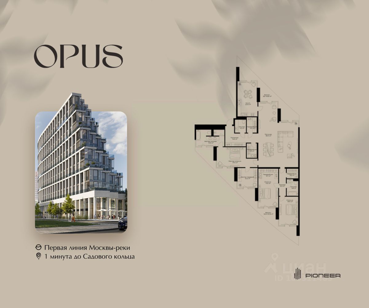 Прямая продажа от застройщика! Продаётся 3-к квартира общей площадью 233.9 кв. м. на 9-м этаже 11 этажного дома. Клубный дом OPUS - современный шедевр архитектуры от компании PIONEER, трансформирующий пространство, меняющий привычный ход вещей. Близость Москвы-реки определила его исключительную форму, вдохновлённую стихией воды. Уникальный и единственный в своём роде OPUS создаёт ощущение преображения, деликатно взаимодействуя с городской тканью. Продуманная территория с парковой атмосферой позволяет находиться в уединении в самом центре города, именно эти исключительные характеристики делают OPUS особенным. Площадь однокомнатной квартиры здесь превышает 50 квадратных метров, а отдельные трёхкомнатные решения восхищают 266-метровым простором и видами на реку. Уникальные квартиры с 8 балконами на разные стороны света, не менее эффектные решения - кабинеты и гардеробные с отдельными балконами, а ванные комнаты с панорамными окнами и собственным балконом. OPUS располагается в историческом месте с видом на Крутицкое подворье и Симоновский вал. Совсем рядом легендарное Замоскворечье - район, сохранивший камерную атмосферу старой Москвы. Локация уникальна также тем, что новые современные объекты будут соседствовать здесь с культовыми объектами культурного и исторического наследия города. За 22 года на рынке недвижимости компания PIONEER реализовала более 30 проектов. Сегодня PIONEER - девелопер премиальной недвижимости с 4 проектами класса премиум и deluxe. Продажа от застройщика. Покупка доступна в рассрочку и ипотеку. Звоните, и мы с удовольствием расскажем все подробности о проекте и условиях покупки.