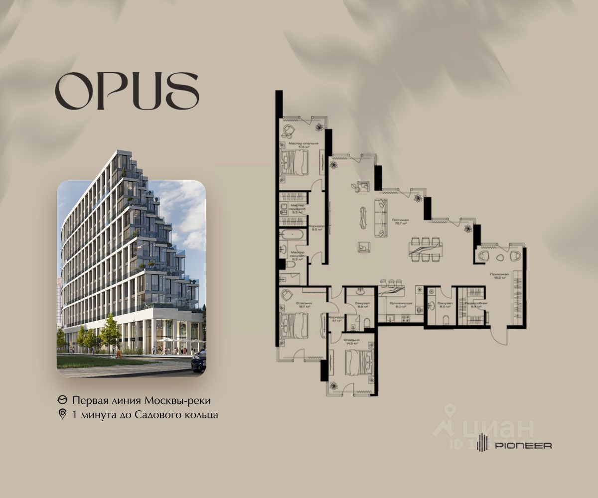 Прямая продажа от застройщика! Продаётся 3-к квартира общей площадью 195.9 кв. м. на 6-м этаже 11 этажного дома. Клубный дом OPUS - современный шедевр архитектуры от компании PIONEER, трансформирующий пространство, меняющий привычный ход вещей. Близость Москвы-реки определила его исключительную форму, вдохновлённую стихией воды. Уникальный и единственный в своём роде OPUS создаёт ощущение преображения, деликатно взаимодействуя с городской тканью. Продуманная территория с парковой атмосферой позволяет находиться в уединении в самом центре города, именно эти исключительные характеристики делают OPUS особенным. Площадь однокомнатной квартиры здесь превышает 50 квадратных метров, а отдельные трёхкомнатные решения восхищают 266-метровым простором и видами на реку. Уникальные квартиры с 8 балконами на разные стороны света, не менее эффектные решения - кабинеты и гардеробные с отдельными балконами, а ванные комнаты с панорамными окнами и собственным балконом. OPUS располагается в историческом месте с видом на Крутицкое подворье и Симоновский вал. Совсем рядом легендарное Замоскворечье - район, сохранивший камерную атмосферу старой Москвы. Локация уникальна также тем, что новые современные объекты будут соседствовать здесь с культовыми объектами культурного и исторического наследия города. За 22 года на рынке недвижимости компания PIONEER реализовала более 30 проектов. Сегодня PIONEER - девелопер премиальной недвижимости с 4 проектами класса премиум и deluxe. Продажа от застройщика. Покупка доступна в рассрочку и ипотеку. Звоните, и мы с удовольствием расскажем все подробности о проекте и условиях покупки.
