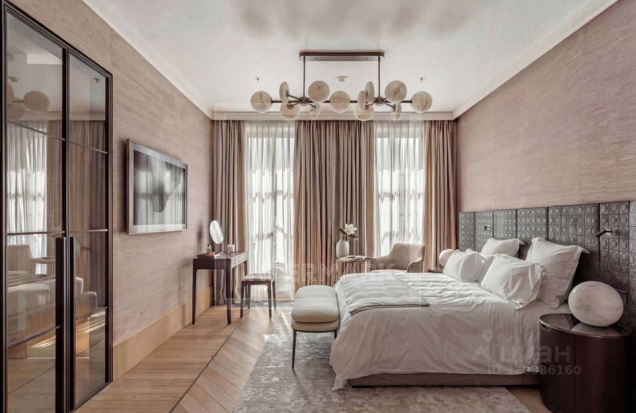 Жилое пространство эргономично спланировано и включает кухню-гостиную с роскошными арочными окнами, уютную спальню с ванной комнатой, гардеробной и выходом на террасу, холл, дополнительную функциональную гардеробную, постирочную комнату и гостевой с/у.