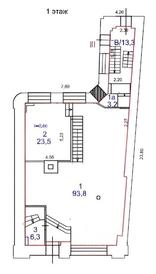 Первая линия домов, первый этаж офисного здания, 1-й этаж S=140,1 м2., h=3,77 м., подвал S=333,4 м2., h=2,80 м.