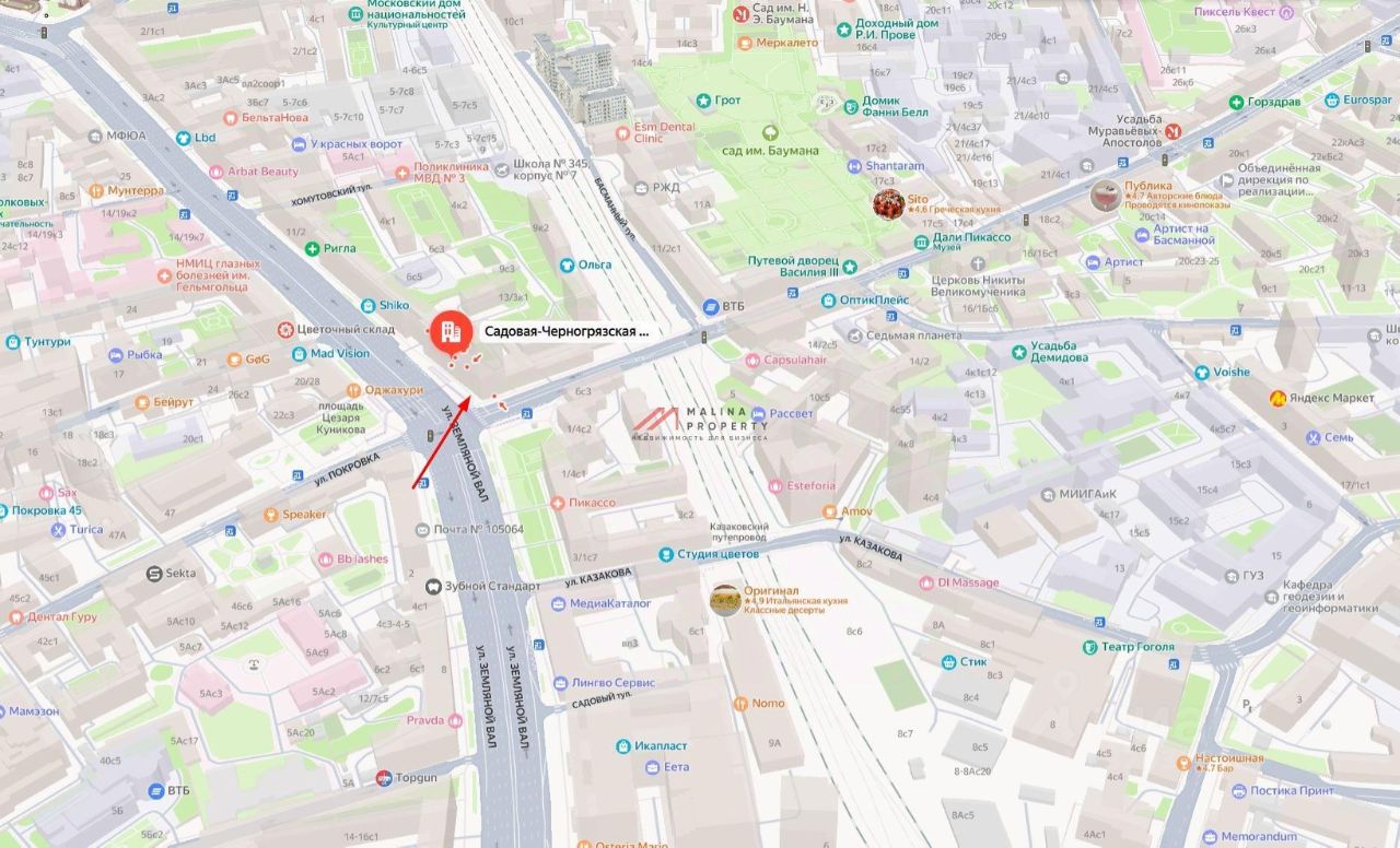 Продажа торгового помещения 605,4 м2 на ул. Садовая-Черногрязская, д. 13с1 (7 минут пешком от метро Красные ворота). 1 линия домов.