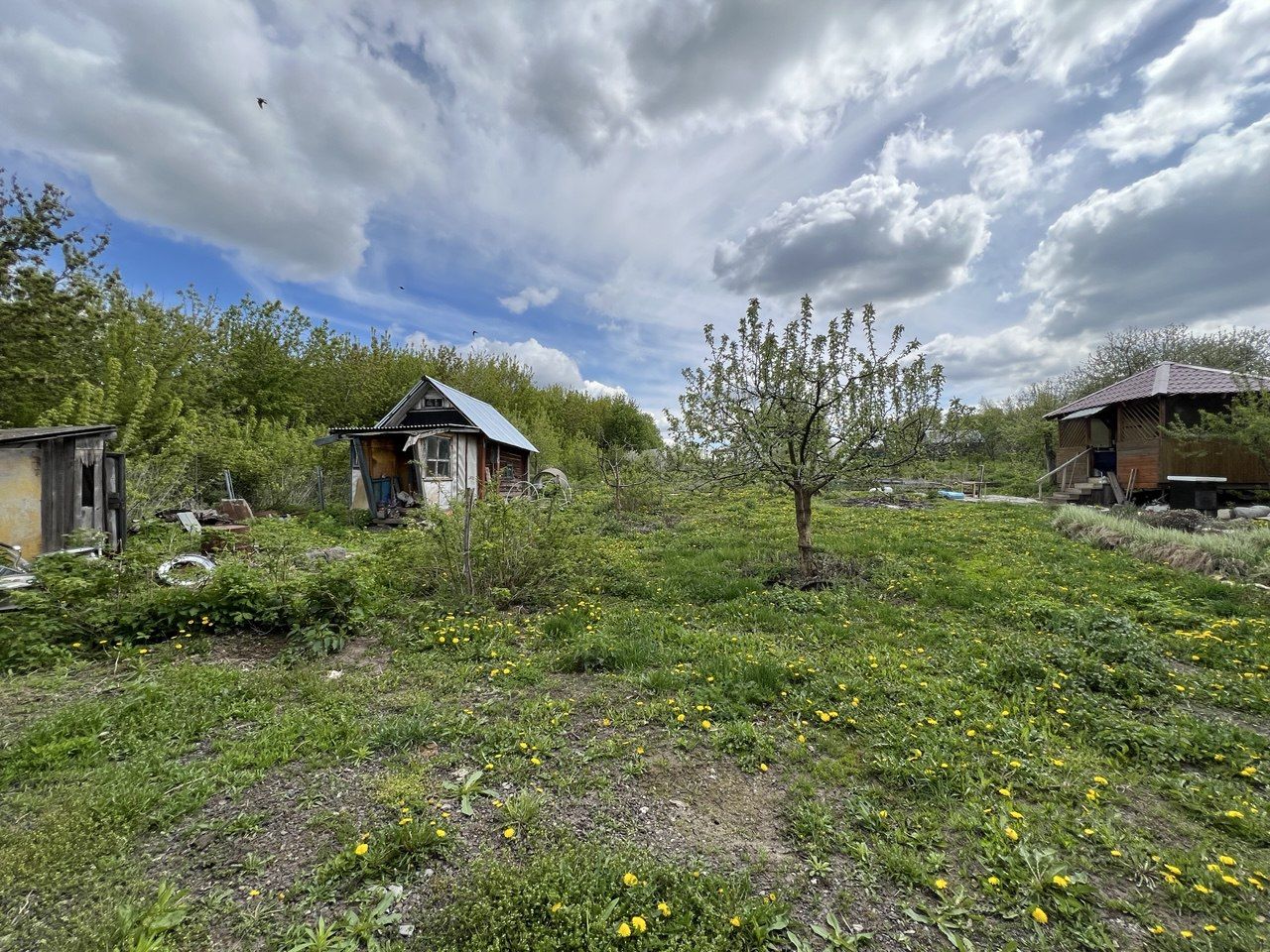 УЧАСТОК 18 СОТОК (ИЖС): — Плодовый сад (яблони, груши, ягоды), теплица, баня (нужен ремонт). — Гостевой дом из бруса (40 м²): 2 комнаты — для гостей, аренды или мастерской! — Ограждение: сетка-рабица + профлист, заезд для авто.