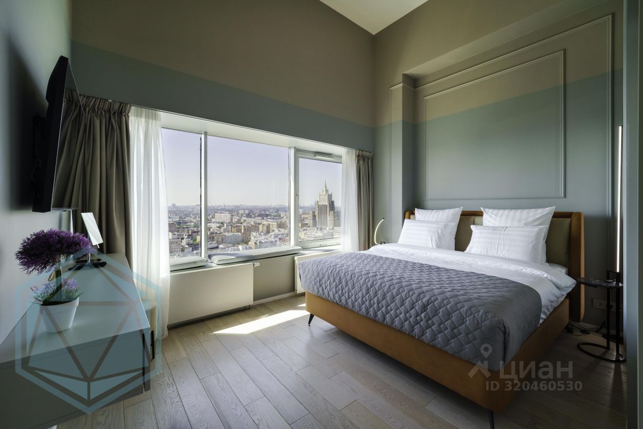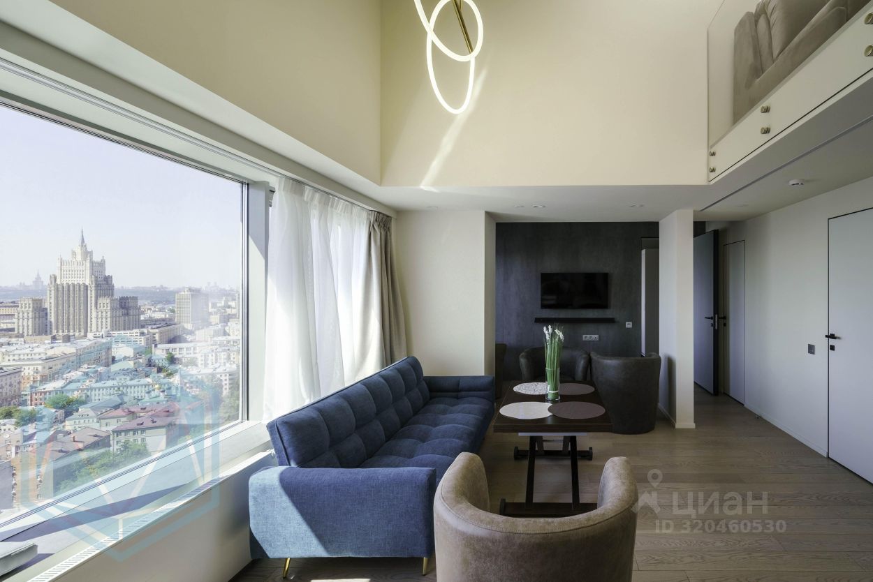 VIP-апартамент в легендарном доме-книжке на Новом Арбате, на самом верхнем этаже, с потрясающим панорамным видом на всю Москву! 2-х ярусные апартаменты с антресолью, общей площадью 60 кв.м. Oкнa выходят на ''тихую'' cтоpону здaния с видoм пешeходный Cтaрый Apбат, Kpeмль, Хpам Xpиста Cпacителя, Статую Петра I - памятник 300-летию Российского флота, Крымский мост, Парк Горького, Сталинские высотки МИД и МГУ, а также Московский дворик с картины русского художника Василия Поленова, написанной в 1878 году! Спальные места: двухспальная кровать 180 см, двухспальный диван-кровать с топпером 160 см, односпальный диван с топпером 105 см. Максимальная комплектация - текстиль, посуда, стиральная и посудомоечная машина, микроволновая печь с функцией пароварки, капсульная кофе-машина, фен, утюг, гладильная доска, пылесос, сейф. Климат-контроль, система приточно-вытяжной вентиляции и кондиционирования. Зенитные фонари в крыше с автоматическими шторками. Телевизор LG с пультом mаgiс rеmоtе. Отделка стен крупноформатным керамогранитом. 2 санузла. Доступ без ключа. Высокие потолки, шторы - полный блэкаут. После реконструкции 2020 года, ЖК THE BOOK - это современное здание бизнес-класса в уникальной локации, с панорамными видами на Старый Арбат и всю Москву. В шаговой доступности Кремль, множество знаменитых театров и музеев, Консерватория, кинотеатр Октябрь, 100+ ресторанов и кафе на любой вкус и кошелёк, разнообразные активности, аттракционы и магазины.