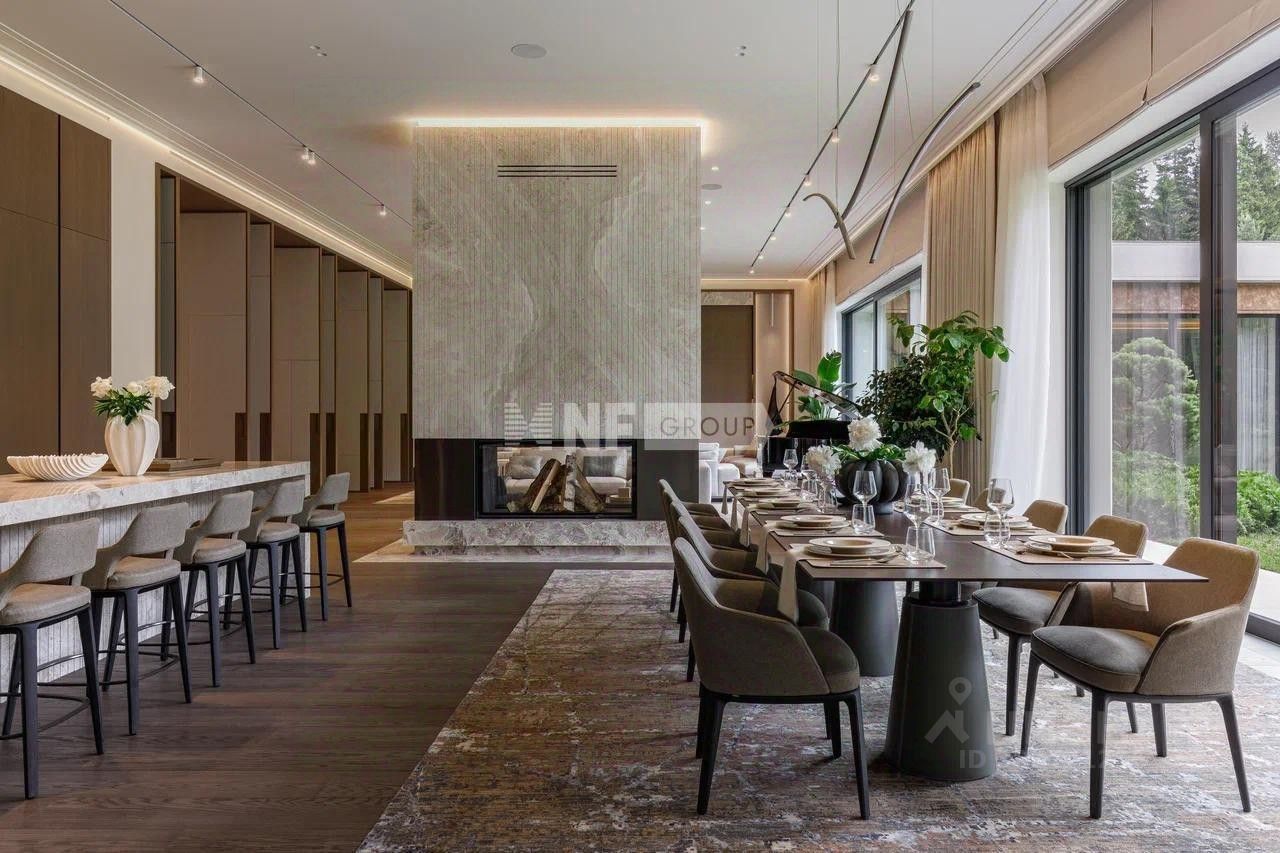 В самом сердце одного из престижных коттеджных поселков Рублево-Успенского направления расположен дом, сочетающий передовую архитектуру и исключительный комфорт. Участок — в нескольких шагах от живописного озера и соснового леса, а до Москва-Сити — всего 35 минут. Поселок Николино — это идеальное место для тех, кто ищет настоящую тишину и высокий уровень жизни, оставаясь при этом рядом с городом. Автор проекта — Сретен Йованович, бюро SJ Architects. Его фирменный стиль читается в каждой детали: чистая геометрия фасадов, монументальные объемы и большие площади остекления. Дом выглядит современно и лаконично, но в интерьере чувствуется тепло: палитра приглушенных, благородных оттенков, премиальные материалы, точечные акценты. Пространство наполнено светом и воздухом, а технологическая начинка делает повседневную жизнь максимально комфортной. Здесь установлена интеллектуальная система KNX, вентиляция с функцией увлажнения воздуха от Daikin, аудиосистемы от Bowers & Wilkins и Procella Audio. Планировка тщательно продумана и предлагает комфортное зонирование для жизни большой семьи, приема гостей и отдыха. На цокольном уровне расположен полноценный блок для персонала, зона для хранения, кинотеатр, игровая. Первый этаж — это просторная общественная зона с несколькими гостиными, рабочей и парадной кухнями, кабинетом и спальней. Также на этом уровне находится зона SPA с бассейном, сауной, массажной и спортзалом. На втором этаже — пять приватных спален, каждая со своей ванной и гардеробной. Коттеджный поселок Николино — это закрытая территория с камерной атмосферой и впечатляющей инфраструктурой: фитнес-центр Riviera Fitness & SPA, теннисный клуб, рестораны, детские площадки и прогулочные зоны среди вековых сосен. Жизнь здесь — это ритм, в котором сочетаются спокойствие природы и респектабельность одного из лучших загородных адресов Подмосковья.