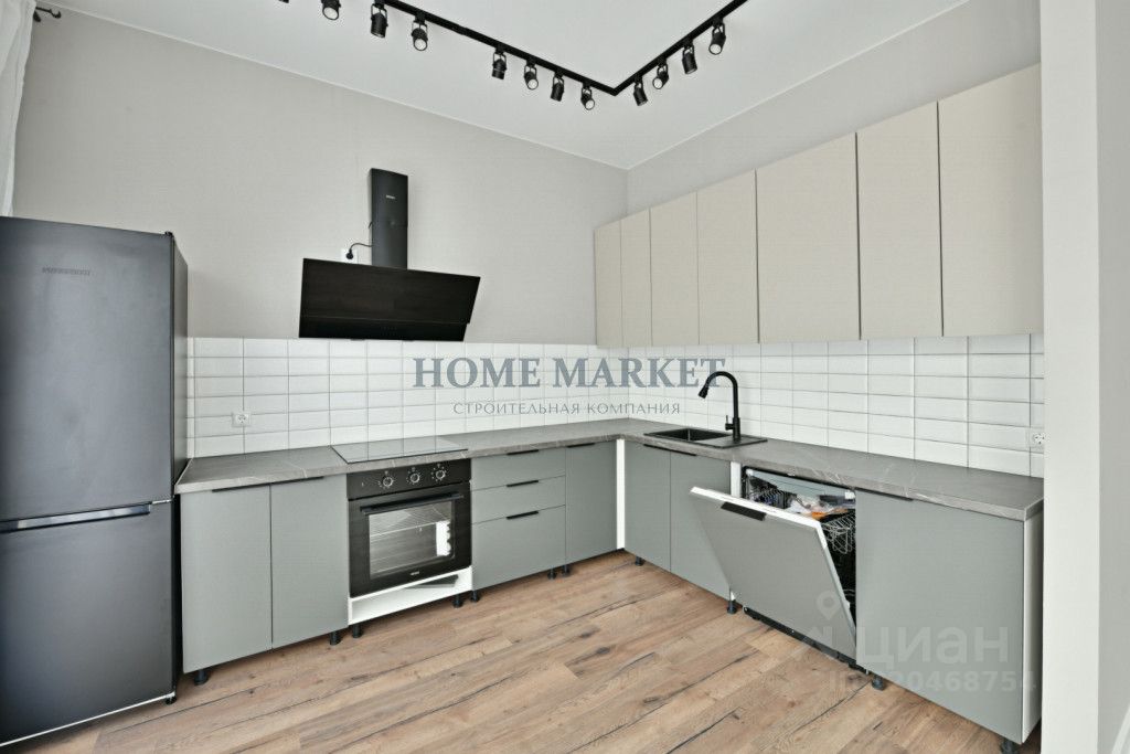 Дом оборудован новым кухонным гарнитуром с встроенной бытовой техникой: духовой шкаф, вытяжка, холодильник, посудомоечная машина 60 см.