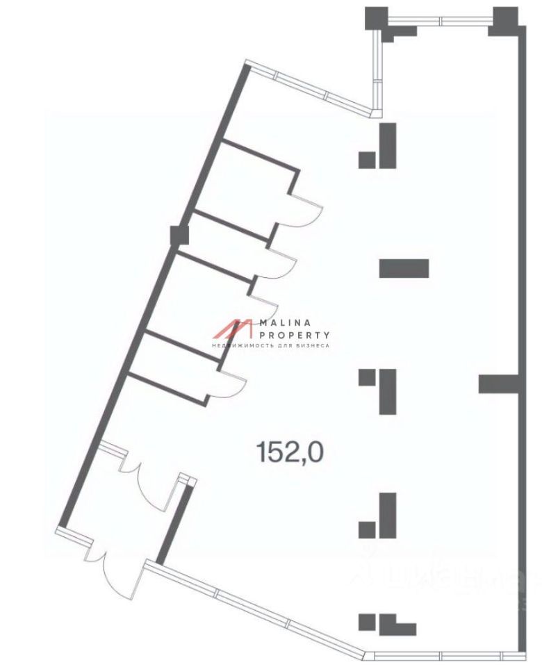 Помещение 150 м2, располагается на 1 этаже, открытая планировка, отдельный вход, высота потолка 6 м, витринные окна по фасаду. Парковка перед фасадом. Место для размещения рекламы.
