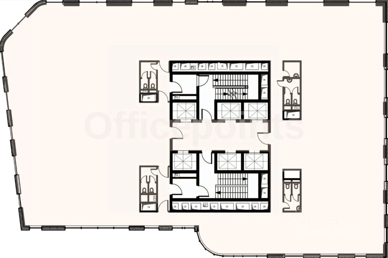 Помещение без отделки, открытая планировка. Приточно-вытяжная система вентиляции, центральное кондиционирование. Подземная парковка на 150 м/мест.