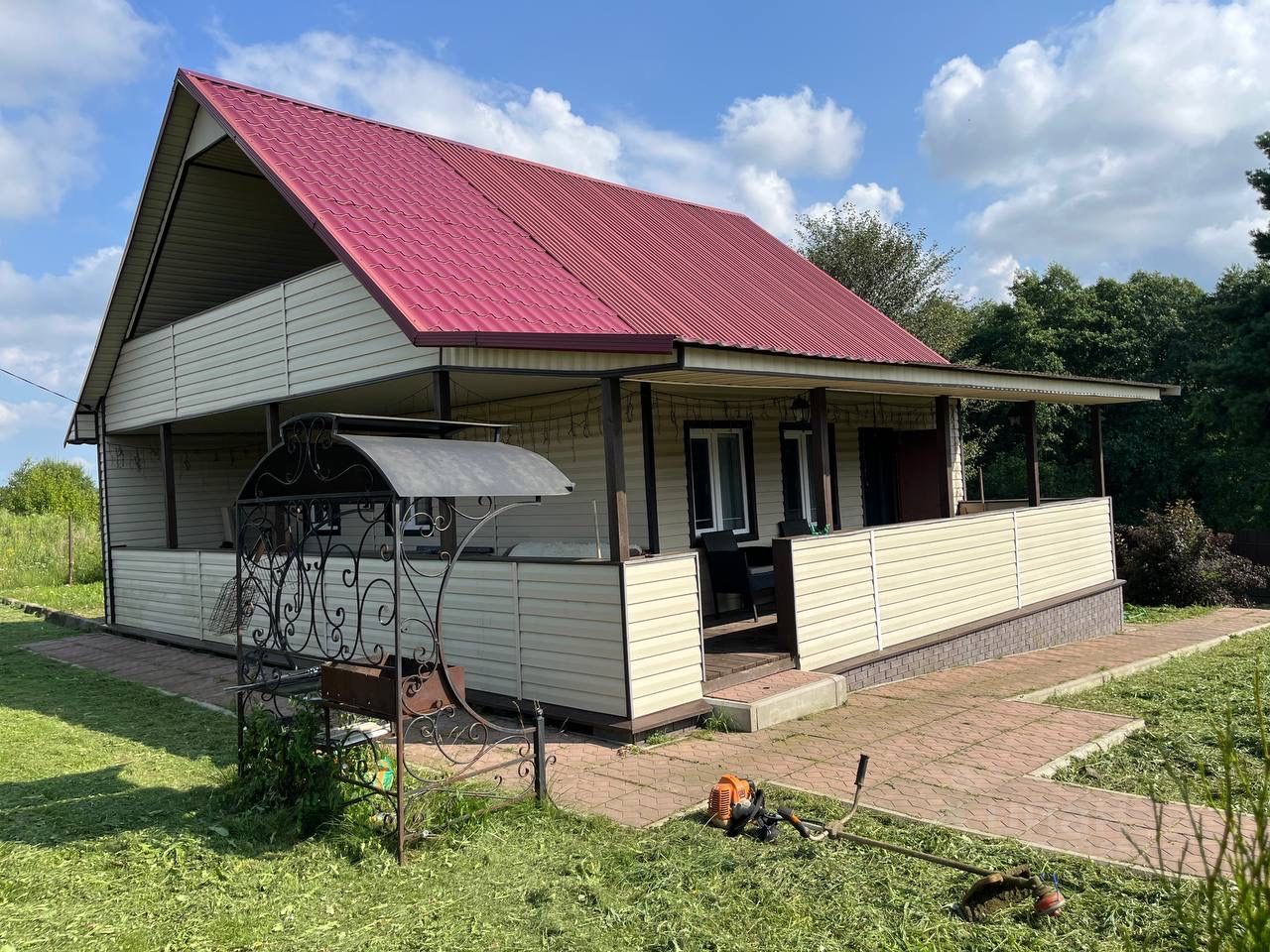 О ДОМЕ: выполнен по каркасной технологии, утеплен в зимнем варианте. Фундамент свайный. Кровля металлочерепица.