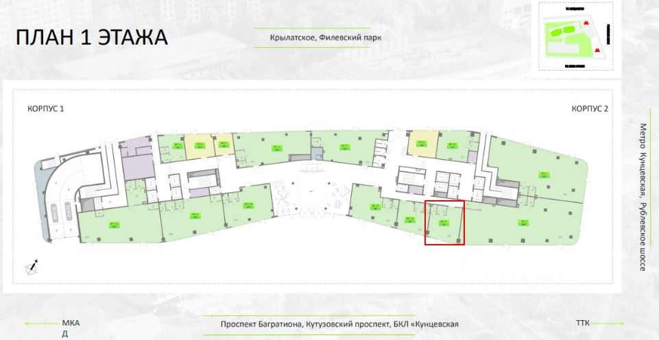 ПРЕИМУЩЕСТВА: - Высокотехнологичные архитектурные решения, подчеркивающие развитие и инновации, - Престижное расположение на Западе Москвы с отличной транспортной доступностью, - Высокий инвестиционный потенциал благодаря выгодному соседству с ключевыми транспортными узлами: 1 минута до Рублевского шоссе, 5 минут до Кутузовского проспекта, 15 минут до Москва-Сити и Нового Арбата, 3 минуты до метро (БКЛ и МЦД-1) Кунцевская, - Комфортные условия работы и безопасности благодаря современным системам управления.