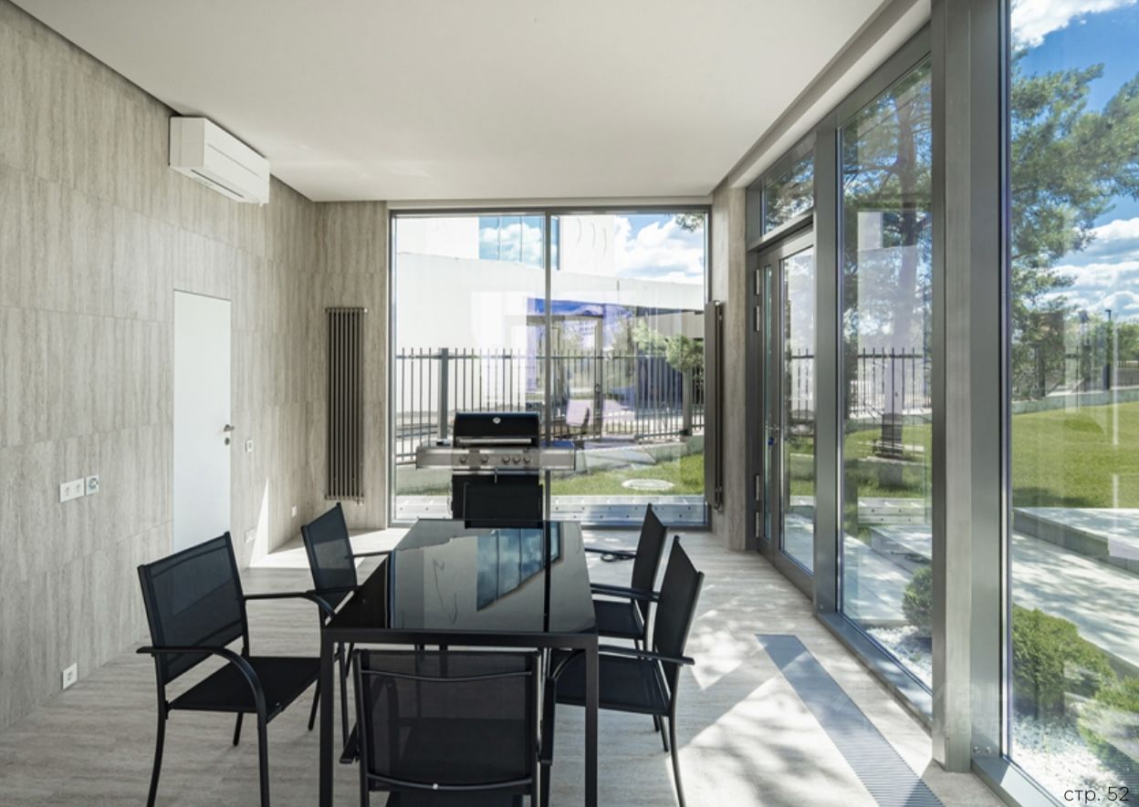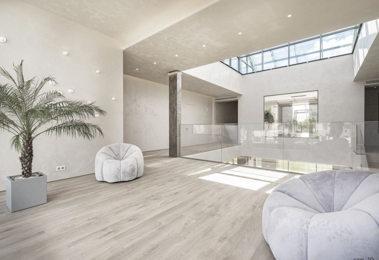 Дом в с о в р е м е н н ом элитном ох р а н я е м ом кот т ед ж н ом п о с е л ке Резиденции Березки / Березки River Village в 17 км от Москвы в самом сердце Рублевки. Окружен массивом взрослого леса. Удобный выезд в Москву по Одинцовской платной дороге (30 минут до центра столицы). ДОМ : Находится в приватной части поселка. Площадь дома: 1.500м2 + эксплуатируемая кровля 385м2. Площадь участка: 30 соток. П Е Р В Ы Й Э Т А Ж делится 1. Про сторная прихожая с н а п я т ь ЗОН: большой гардеробной, 2 . Кухня и з натурального камня Кварцит с техникой kuppersbusch вместе с уютной гостиной- столовой п о д стеклянной крышей, 3 . С а н у з е л , 4 . Светлый, просторный кабинет в т и хо й з о н е э т а ж а , 5 . Приватная chill-зона у бассейна, и патио-террасой с лежаками , которые выходят прямо на лужайку участка. Зд е с ь ж е собственные р а з д е в а л к и, т у а л е т ы и х а м м а м ВТОРОЙ ЭТАЖ предназначен для проживания : 1 . Спальня с собственным санузлом и гардеробной д л я ма льчика, 2 . Спальня с собственными с анузлом и гардеробной с окнами н а лужайку для д е в о ч к и , 3 . Го стевая спальня с собственным с а н у з л ом и гардеробной, 4. Просторный холл с большим п а н о р а м н ы м о к н о м в о д в о р , 5. Мужская хозяйская спальня с санузлом и гардеробной, 6 . Б о л ь ш а я ж е н с к а я с п а л ь н я с п р о с т о р н ы м с а н у з л о м и вместительной гардеробной, 7 . Зал д л я й о г и с панорамной к р ы ш е й. ЦОКОЛЬНЫЙ ЭТАЖ - место для Вашего досуга : 1. Приватный домашний кинотеатр с о звукоизоляцией, оборудованный современной техникой, 2 . П о л н о ц е н н ы й с п о р т з а л с о с т о л о м д л я настольного тенниса , 3. Бильярдная комната, 4 . З о н а джакузи и с ау н ы с каменной печкой с душевыми и раздевалкой, На этом ж е э т а ж е з о н а д л я обслуживания д ом а : 1 . П р а ч е ч н а я с о с т и р а л ь н ы м и и с у ш и л ь н ы м и м а ш и н а м и , 2 . Продуманая, мощная, с о в р е м е н н а я к о т е л ь н а я с д в у м я немецкими ко т л а м и Buderus, 3 . Б о л ь ш а я к о м н а т а с о с т е л л а ж а м и д л я х р а н е н и я, 4 . Ком н ат а д л я няни с о с во и м с а н у з л о м.