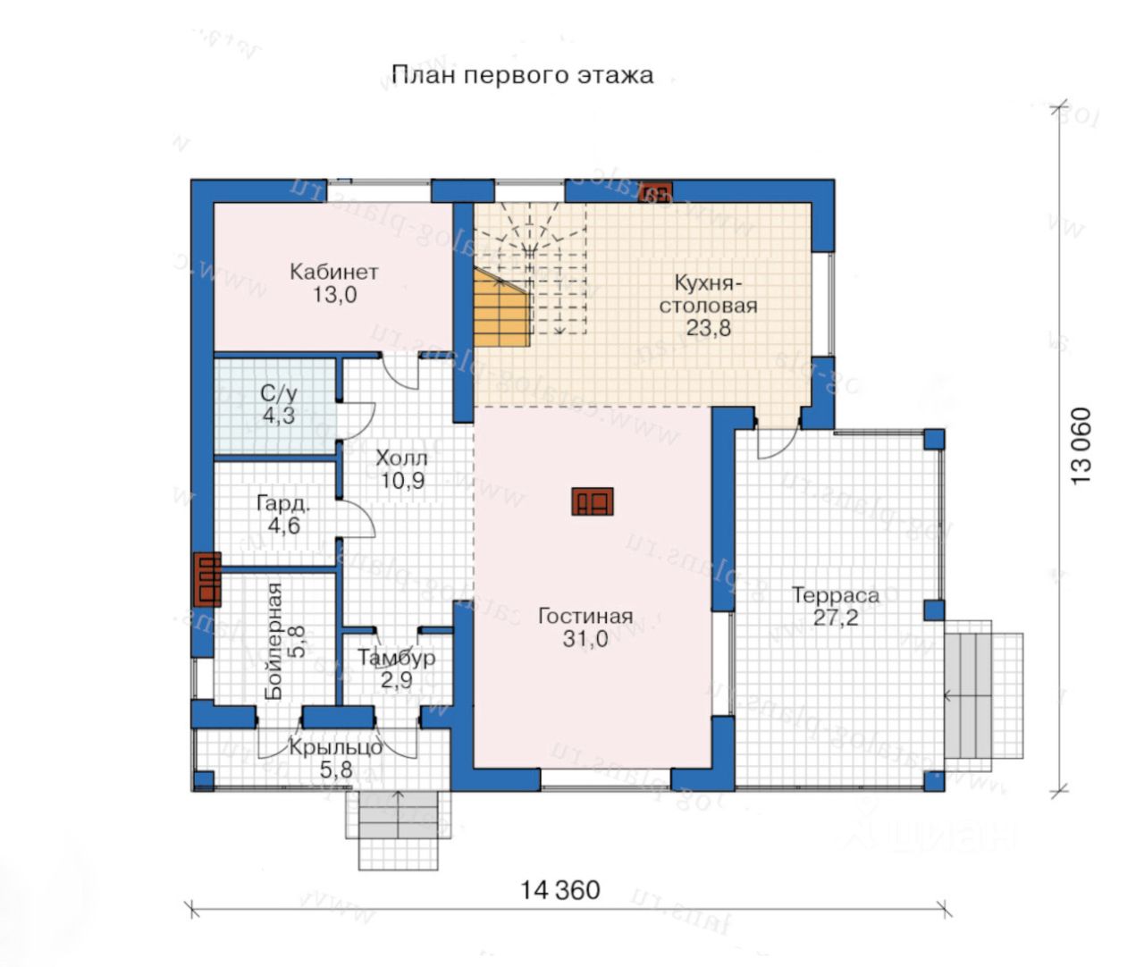 1 этаж: удобная прихожая с нишей для шкафа, вместительная топочная кладовка, гостевая спальня или кабинет, большой санузел и огромная кухня - столовая - гостиная площадью с вторым светом и с выходом на просторную веранду. В гостиной много света и воздуха, есть удобная ниша у окна для зимнего сада или уютного диванчика. 2 этаж: холл и большое пространство под свободную планировку, где по плану 3 спальни и санузел. В одной из спален есть балкон с видом на лес (сторона заката).
