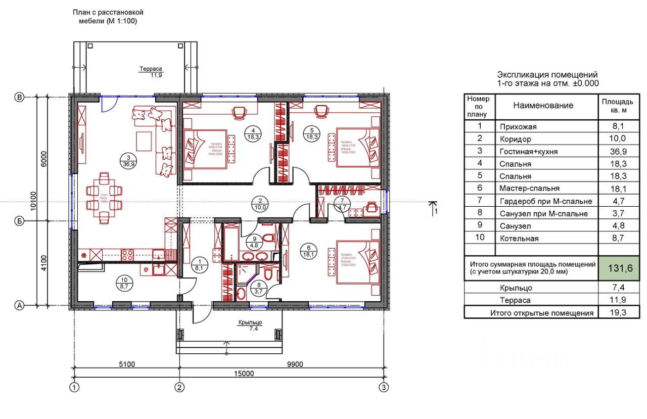Общая площадь131 м2