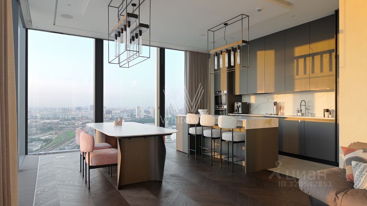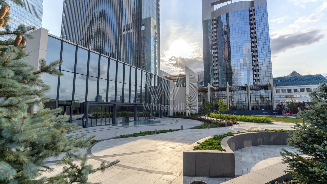 Главное о локации. Жизнь здесь сосредоточена в самом сердце Москва-Сити. Утро можно начать с прогулки по набережной или короткой дороги в детский сад 2112 — всего 10 минут пешком. Старшие дети учатся в ''Школе будущего'' 2030, школе 1726 или английской школе 1232. Днём удобно заглянуть в ''Афимолл'' за покупками, в супермаркет ''Перекрёсток'' или на тренировку в фитнес-центр World Class. Вечером жители выбирают рестораны и кафе торговой галереи или концерты и события в деловом квартале. Метро ''Международная'' и аэроэкспресс в аэропорт Домодедово находятся в трёх минутах ходьбы, а выезд на ТТК и Звенигородское шоссе делает передвижения быстрыми.