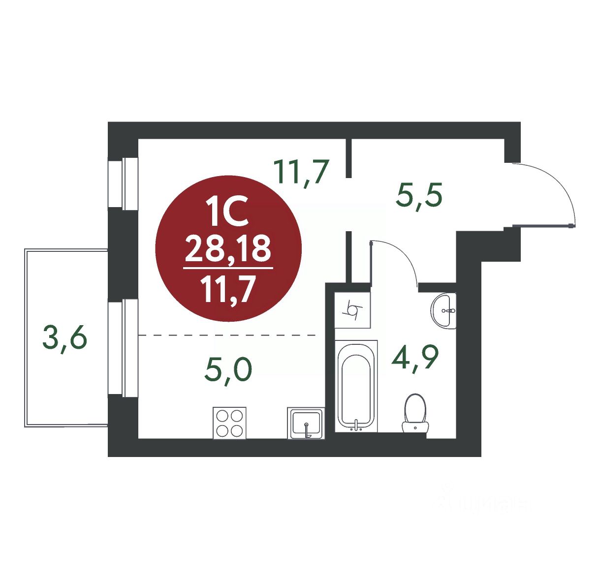 Общая площадь28,18 м2